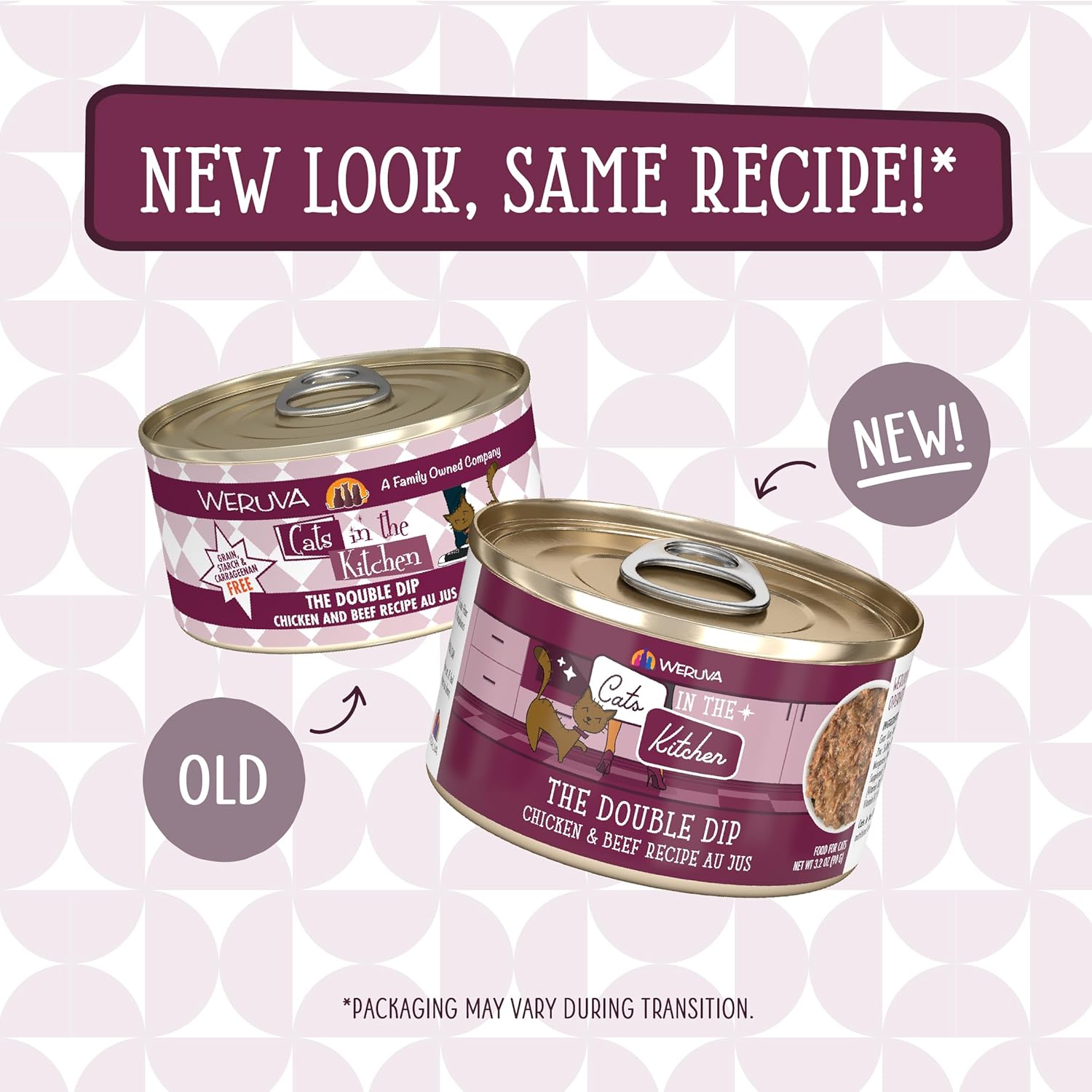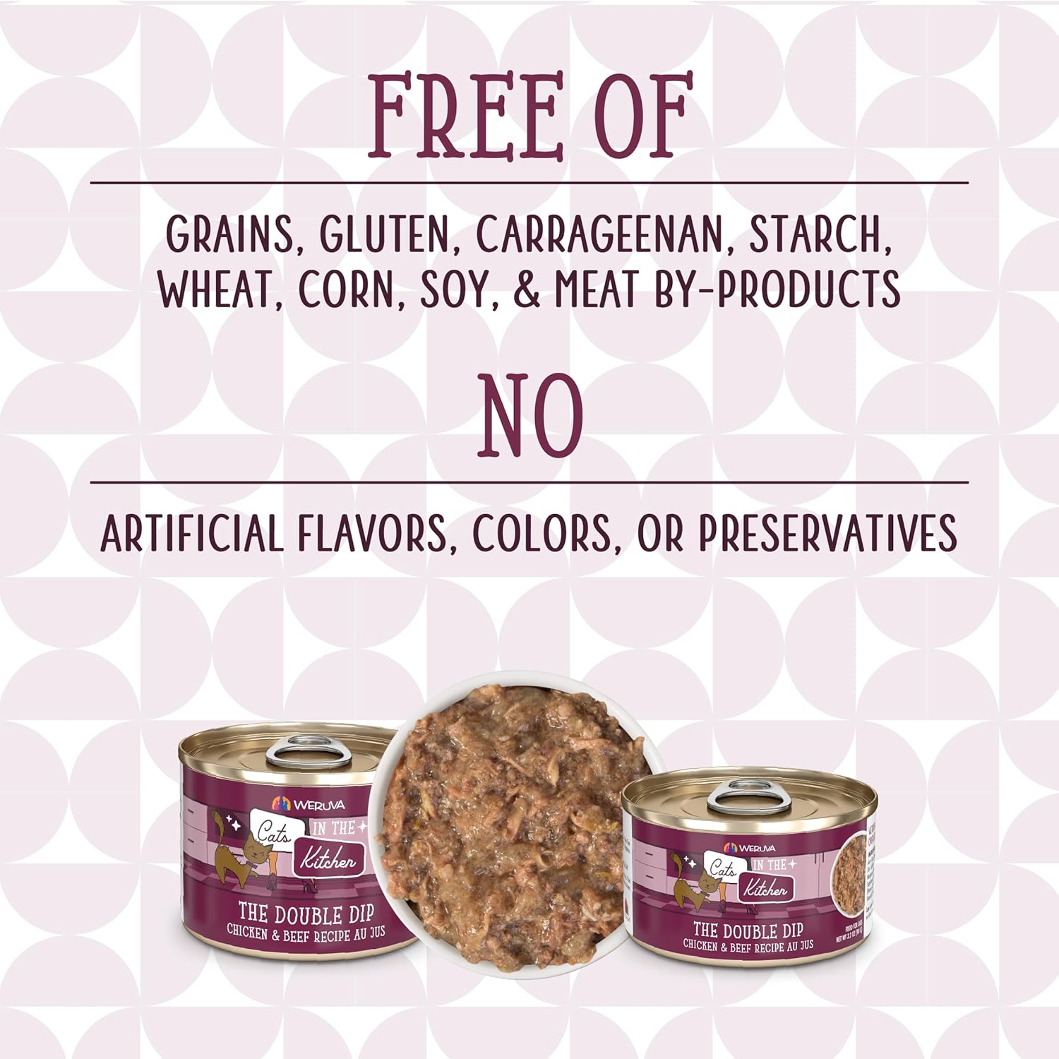 Weruva Cats in The Kitchen, The Double Dip with Chicken & Beef Au Jus Cat Food, 3.2oz Can (Pack of 24)