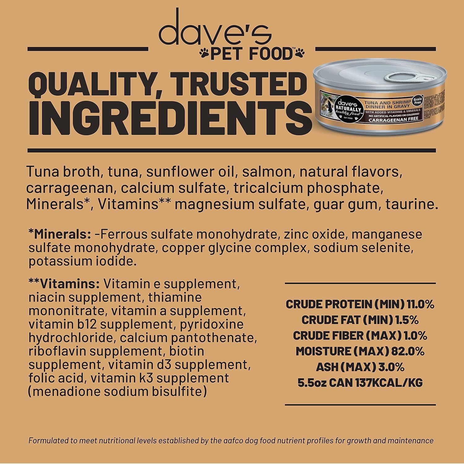 Dave's Pet Food Grain Free Wet Cat Food Gravy (Tuna & Shrimp Dinner in Gravy), Naturally Healthy Canned, Added Vitamins, 5.5 oz Cans (24 Pack)