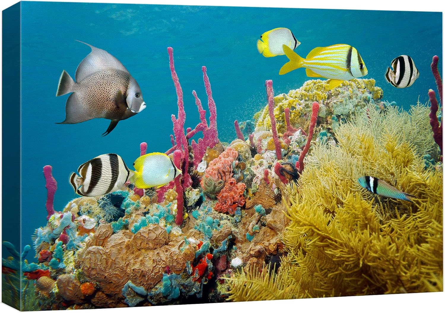 wall26 Canvas Print Wall Art Deep Sea Marine Fish with Coral Reef Nature Ocean Photography Realism Nautical Scenic Relax/Calm Multicolor Ultra for Living Room, Bedroom, Office - 32"x48"