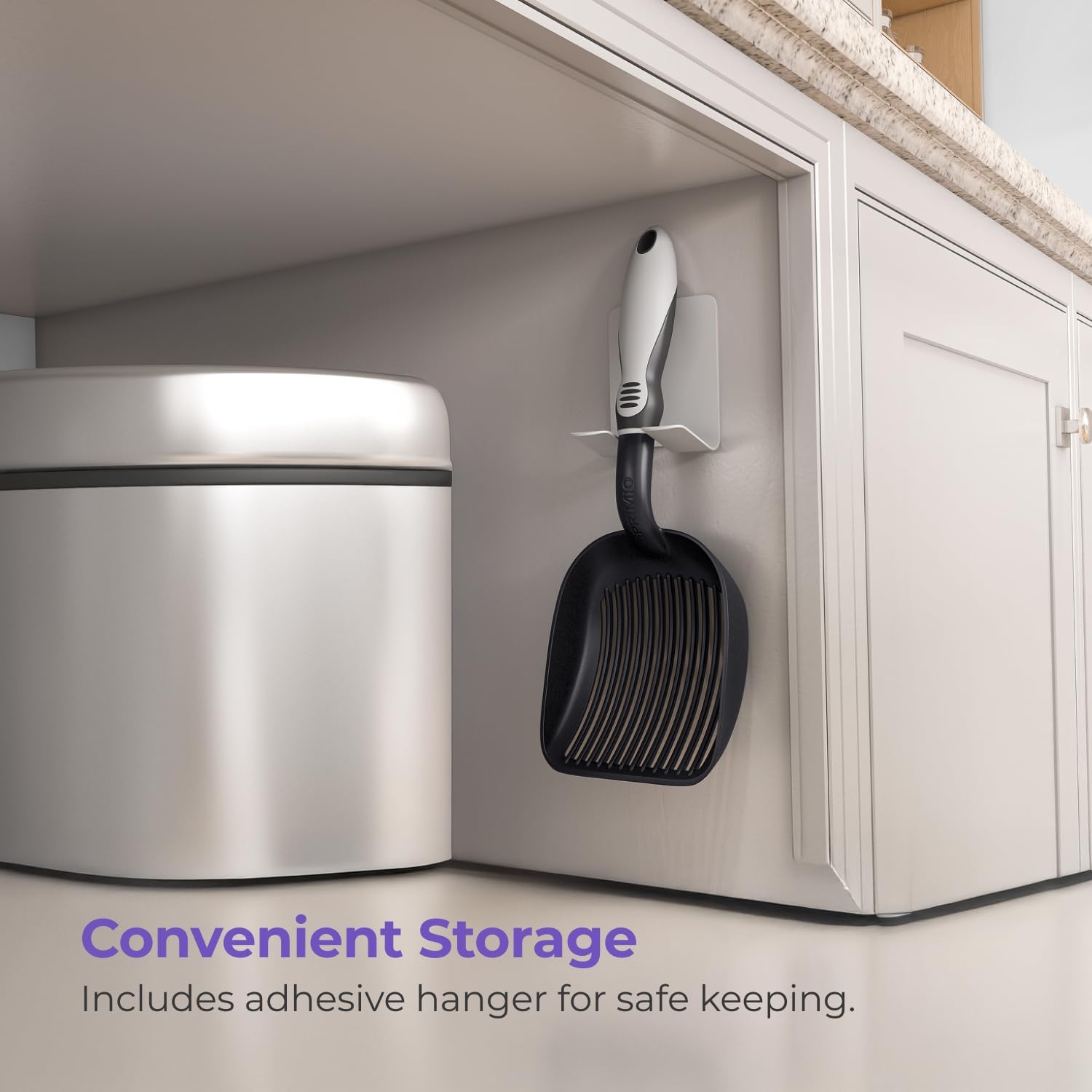 - Convenient Storage: Includes a plastic wall hanger with strong 3M adhesive for easy storage, keeping your metal cat litter scoop within reach and your cleaning space neat, tidy, and well-organized