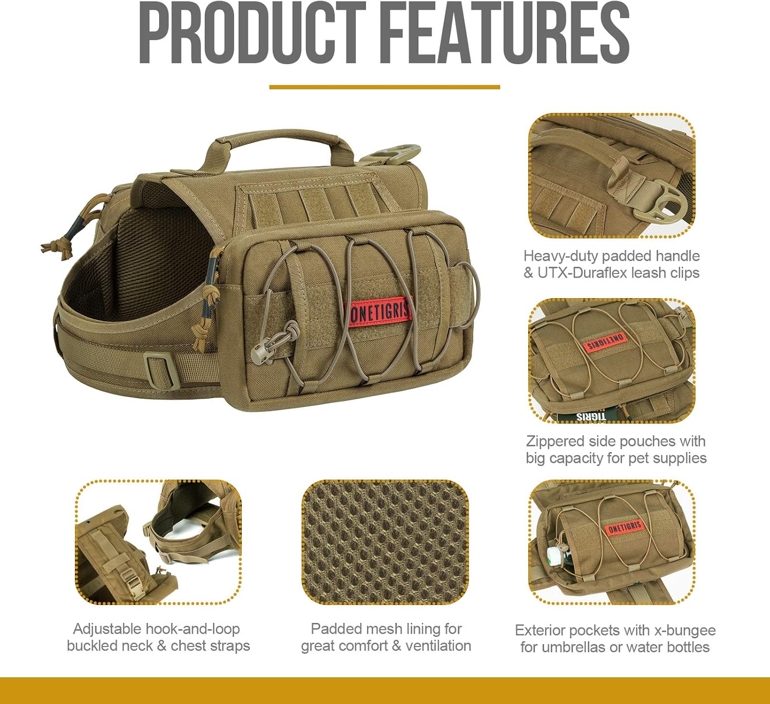 - OneTigris MAMMOTH Dog Pack: Durable 1000D nylon with mesh lining for breathability to maximize function and comfort on lengthier outings