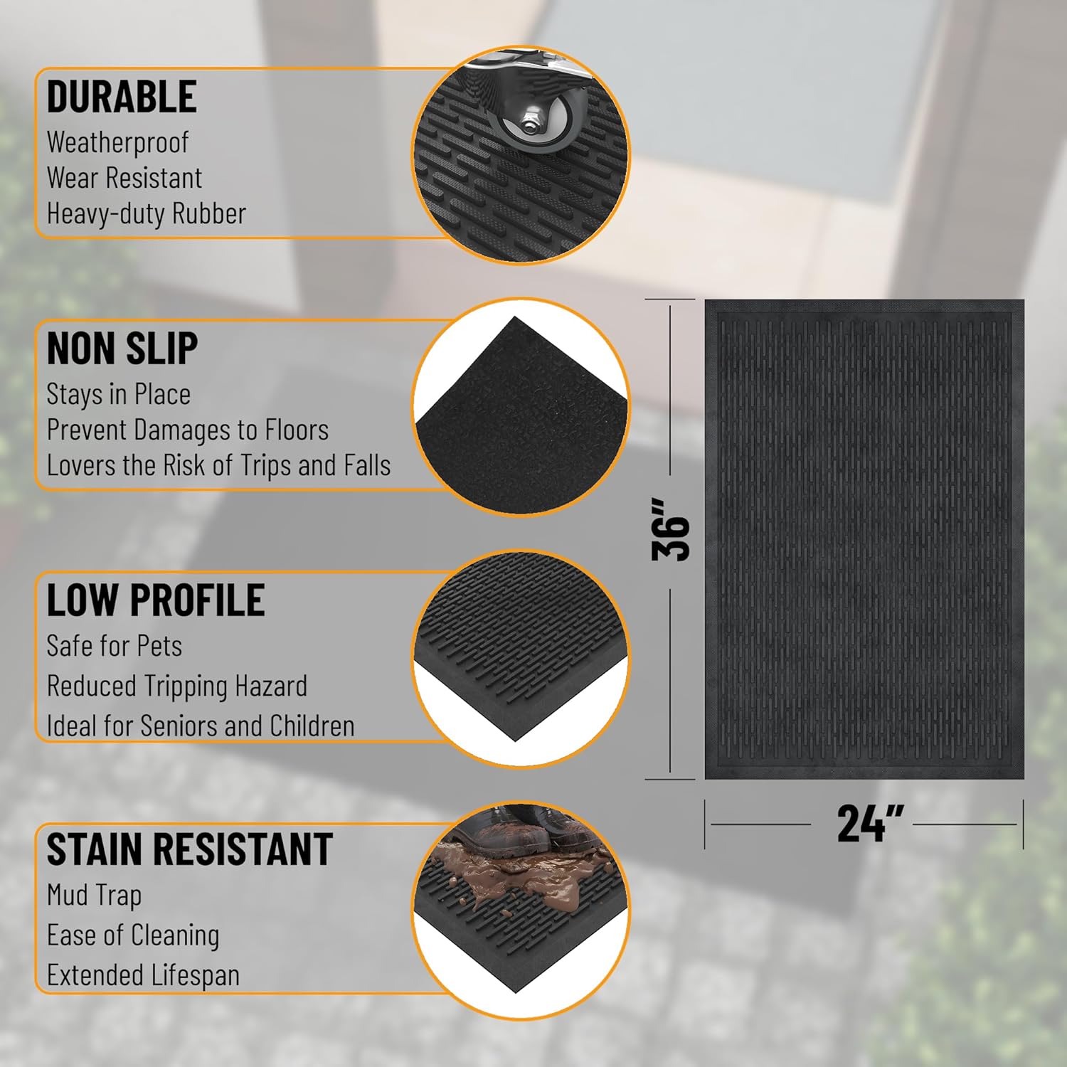 - [BUILT FOR INDOOR & OUTDOOR USE]: Durable rubber construction handles weather, spills, and mess—great for entryways, kitchens, patios, garages, or utility rooms.
