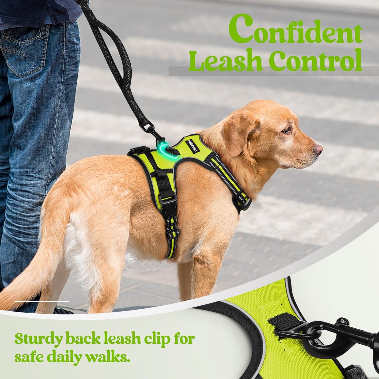 rabbitgoo Dog Harness No Pull with 2 Leash Clips, Adjustable Soft Padded, Reflective Oxford No Choke Pet Vest with Easy Control Handle for Large Dogs, Green, XL