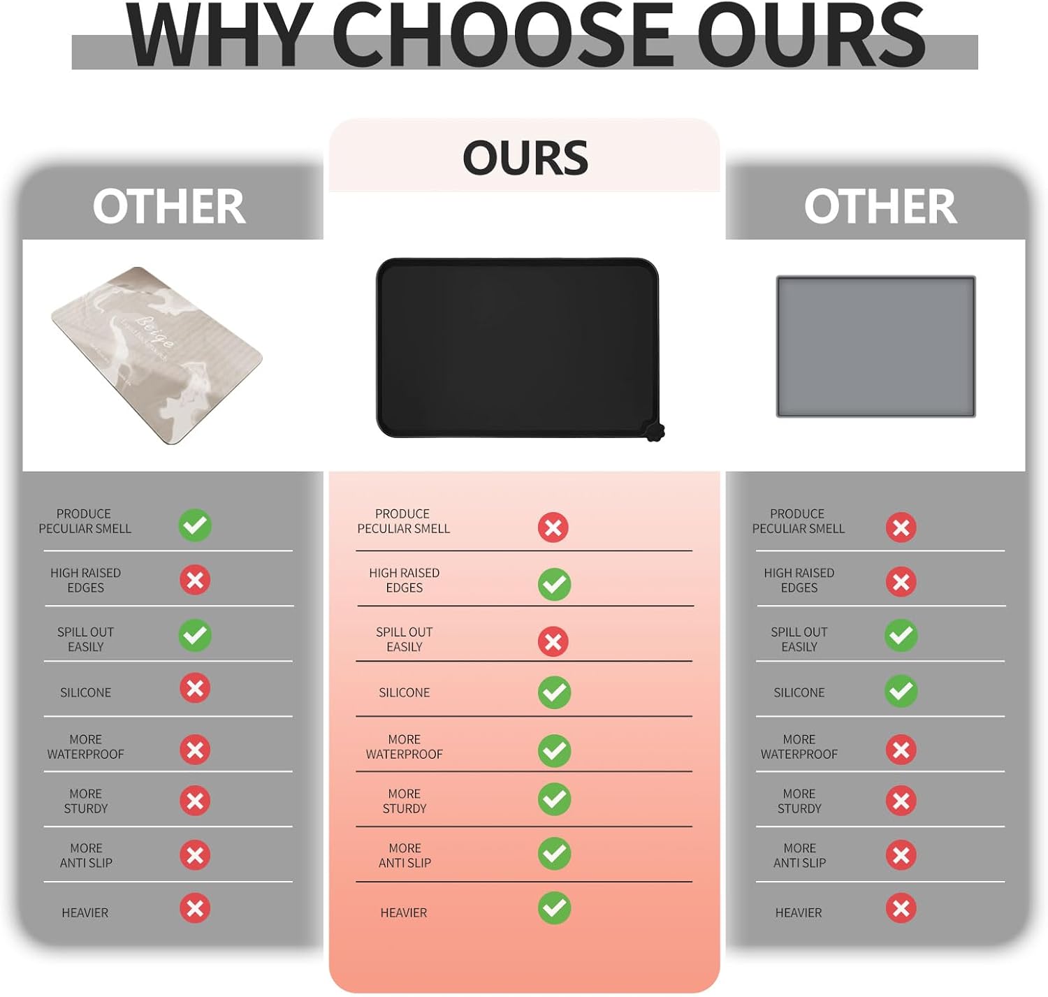 - High-raised edges: say goodbye to messy floors with our mats' high-raised edges that protect your floors from spills and splashes. Keep food and water contained and your floors mess-free
