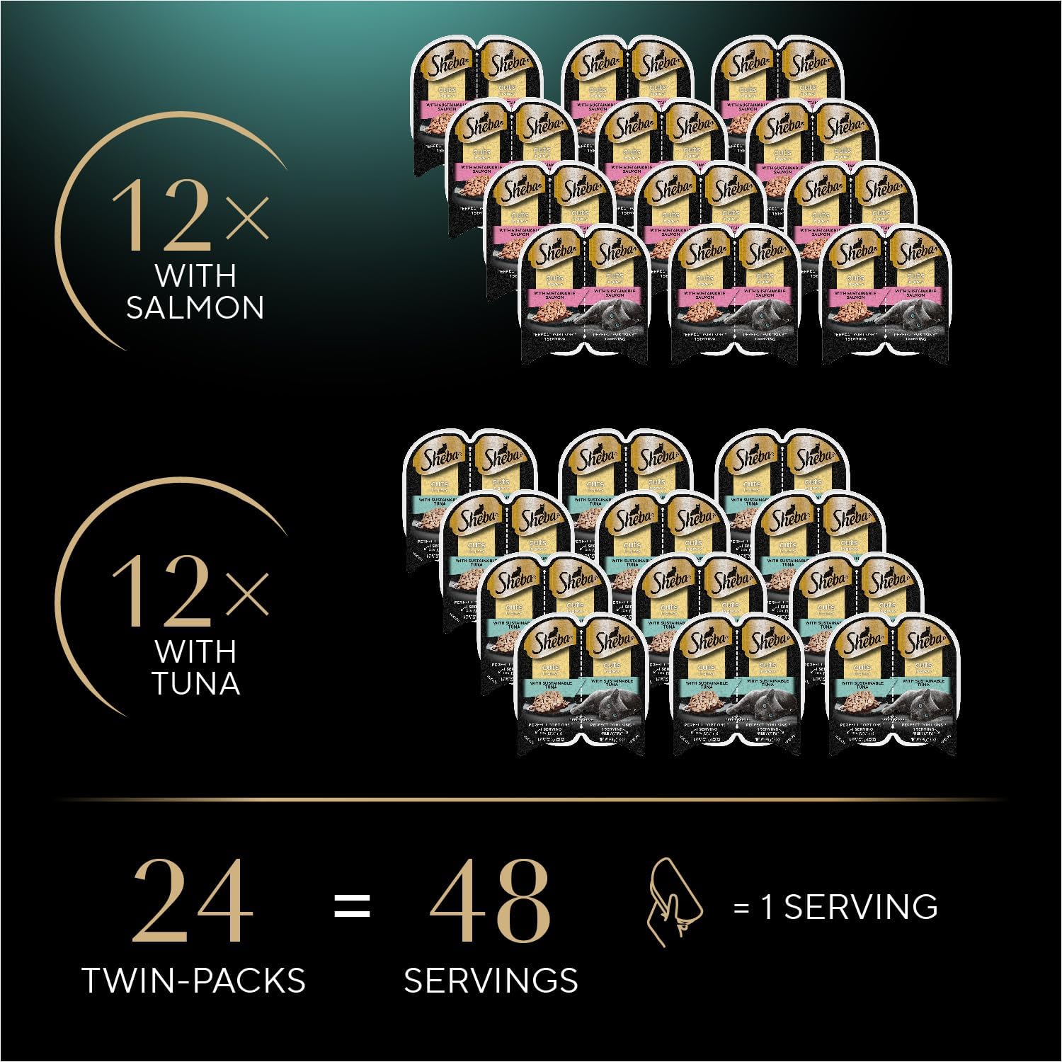 Sheba Perfect Portions Wet Cat Food Cuts in Gravy Variety Pack, with Sustainable Tuna and with Sustainable Salmon, 2.6 oz. Twin-Pack Trays (12 Count, 24 Servings) (Pack of 2)