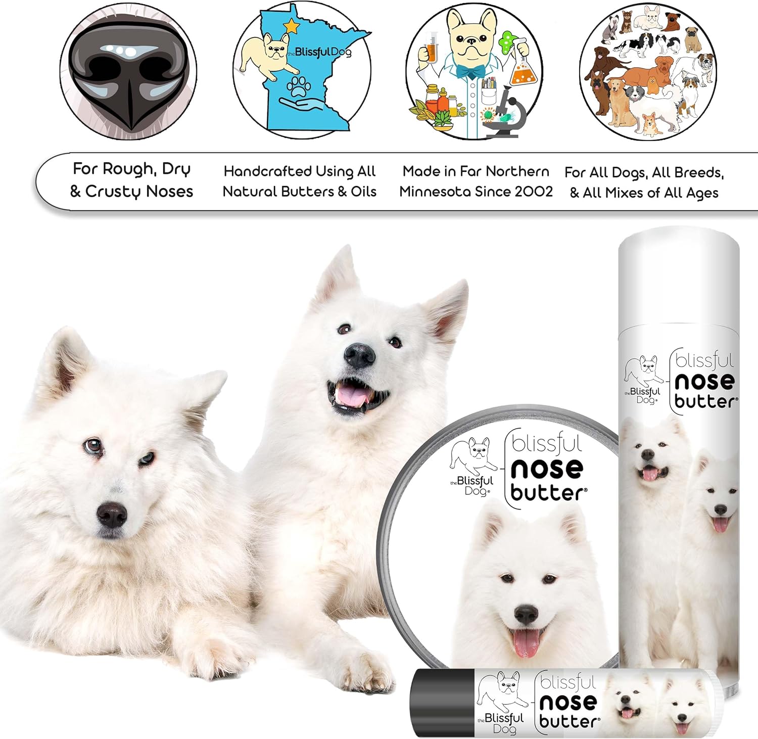 The Blissful Dog Samoyed Nose Butter for Dry, Cracked Skin, Lick-Safe Dog Nose Balm with Moisturizing Shea Butter, Almond, Olive, and Essential Oils, Pet Supplies, Uncented, 8 oz.