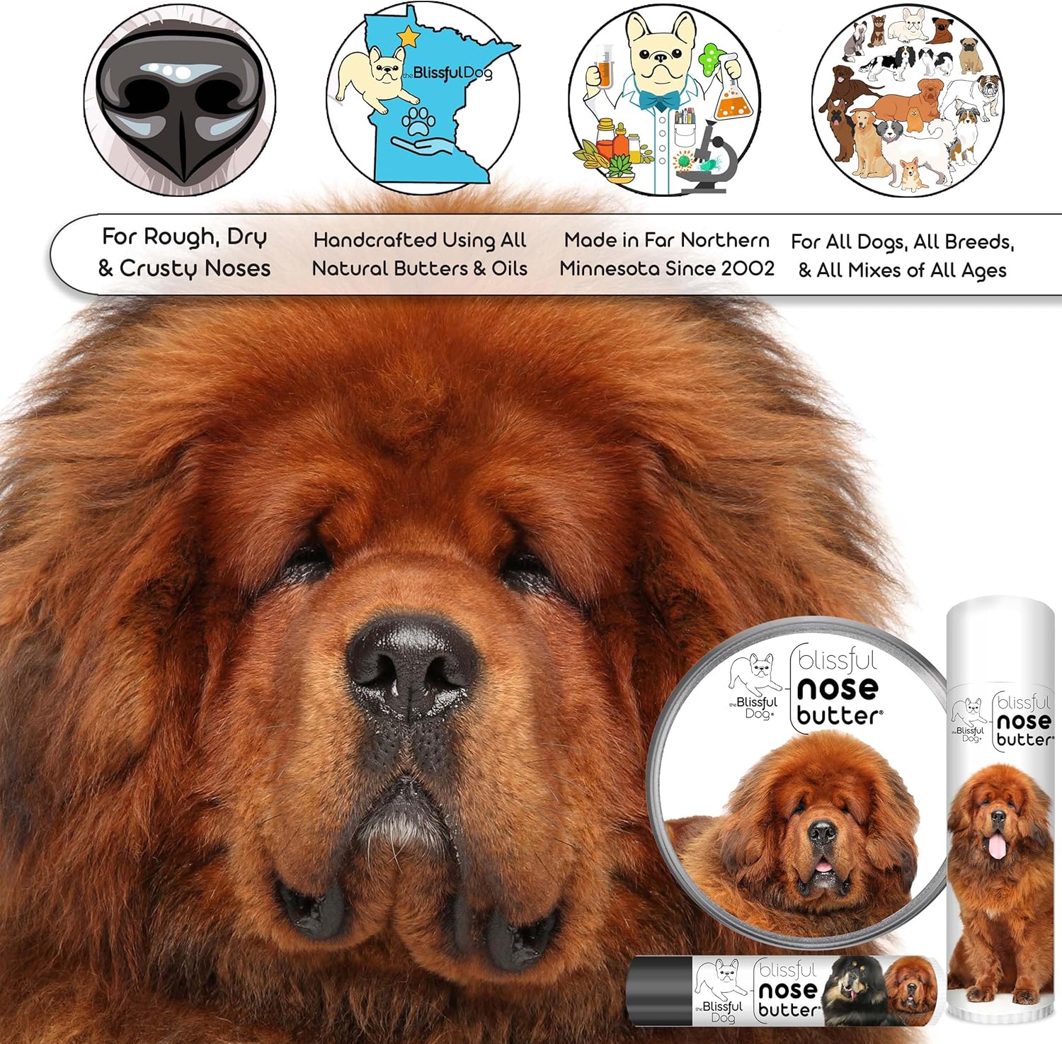 The Blissful Dog Tibetan Mastiff Unscented Nose Butter - Dog Nose Butter, 8 Ounce
