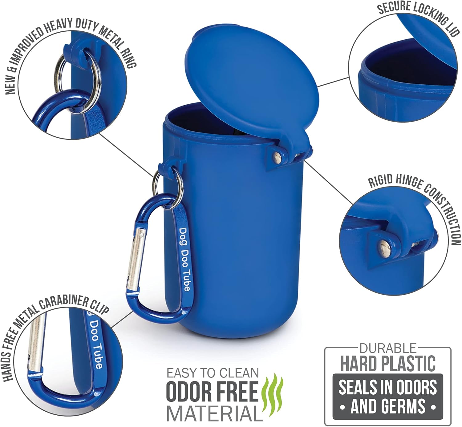 - LOCKS IN BAD ODORS: Dog Doo Tube Poop Bag Holder is designed for carrying the smelly little bags after your dog takes care of business. Simply drop the filled bag into the Dog Poop Holder; its tight fitting lid seals in the odor and germs.