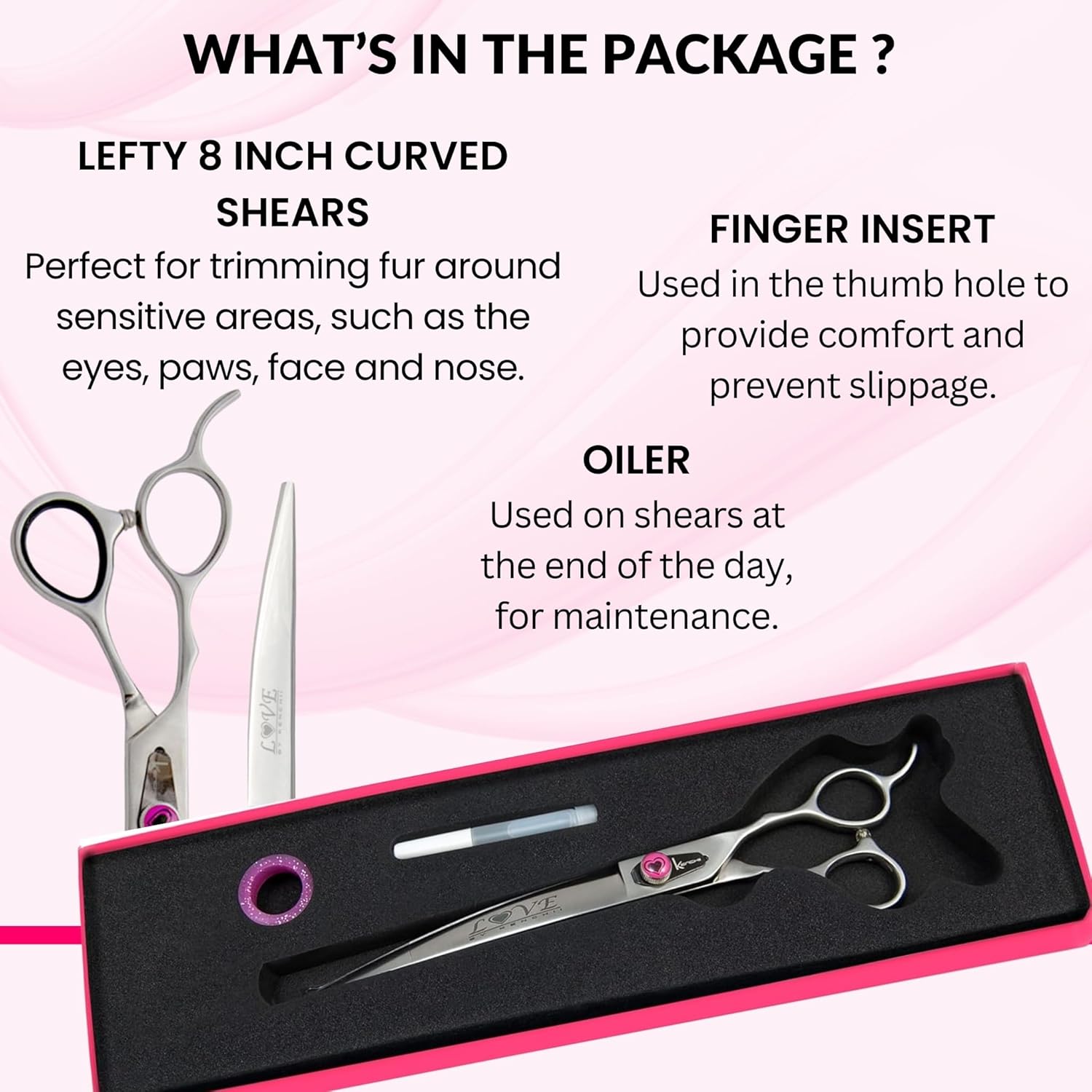 Kenchii Love Left Handed Dog Grooming Scissors, 8 Inch Curved Shears, Dog Scissors for Grooming, Professional Pet Grooming Scissors, Ergonomic & Comfortable