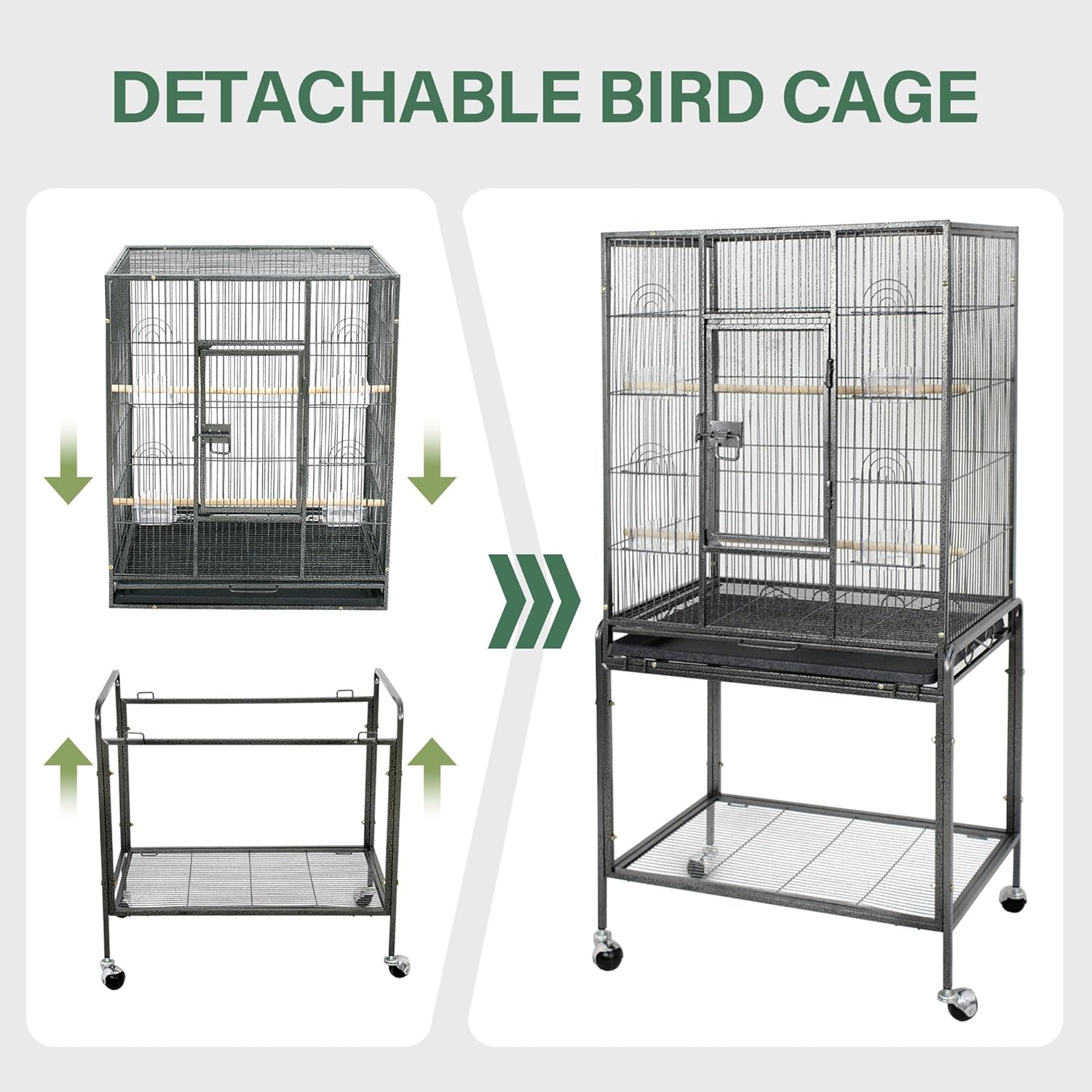 ZENY 53-Inch Bird Flight Cage, Wrought Iron Standing Large with Rolling Stand for Cockatiels Pet Parrot Parakeet Lovebird Canary Finch (Black)