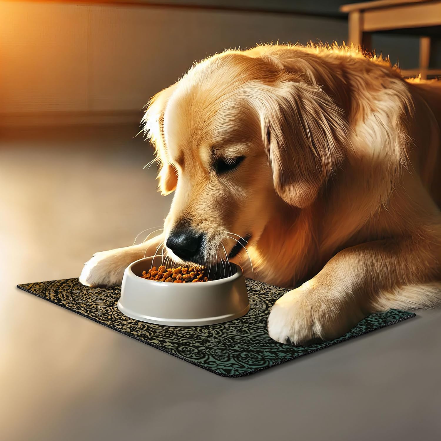 - Features - Fun prints and long-lasting colors. Find any theme and color you want to match your room decor or your pet’s personality. This pet feeding mat can even feature your cat's or dog’s favorite item or design, adding a cheerful touch to your pet’s feeding area.