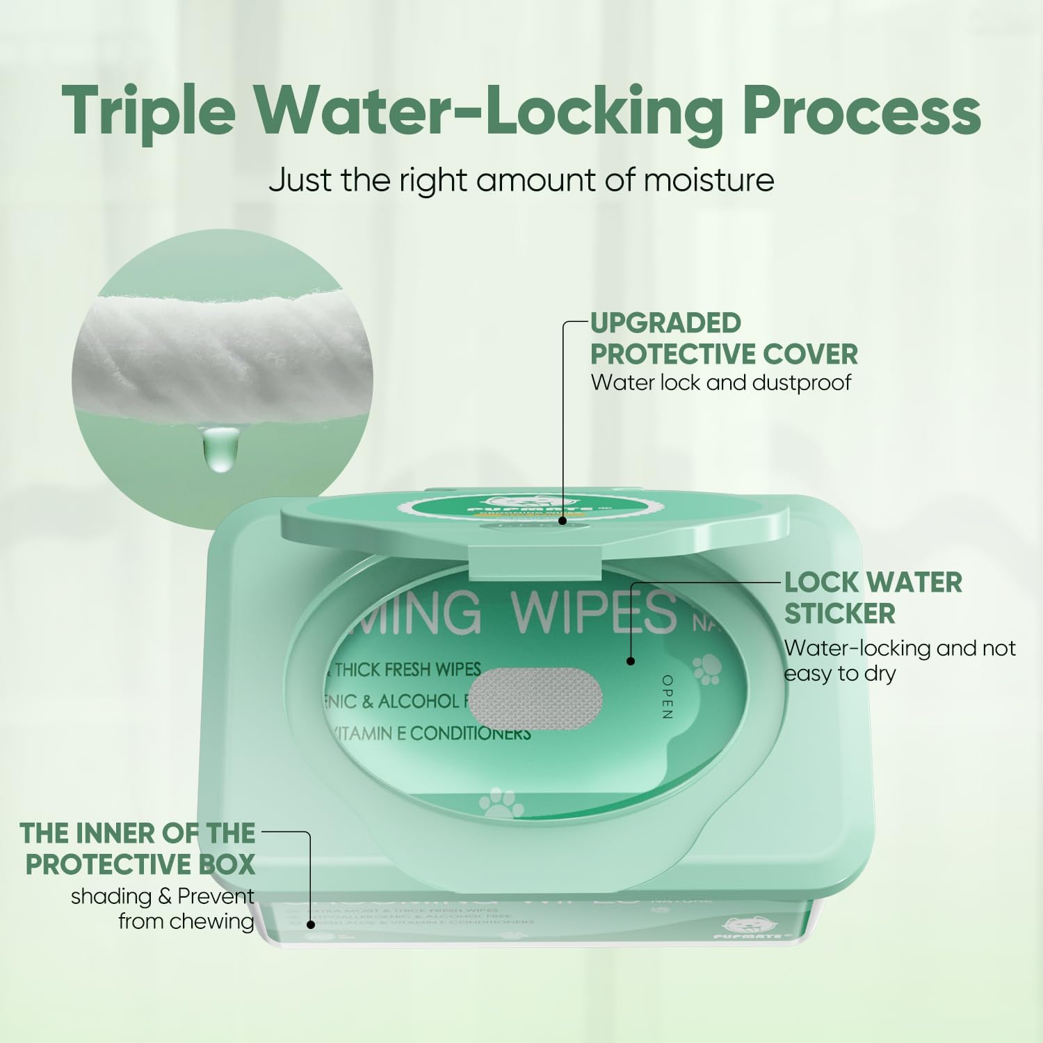 • DELICATE AND EFFICIENT CLEANSING: At PUPMATE, These grooming wipes for dogs & cats, and puppies wipes go beyond cleaning – they embody our commitment to creating a happier, healthier life for pets. Whether it's ridding them of dirt, mud, or a weird smell, our pet wipes work diligently to cleanse their butt, eyes, ears, and paws, ensuring that their four-legged friend feels consistently clean and delightfully refreshed