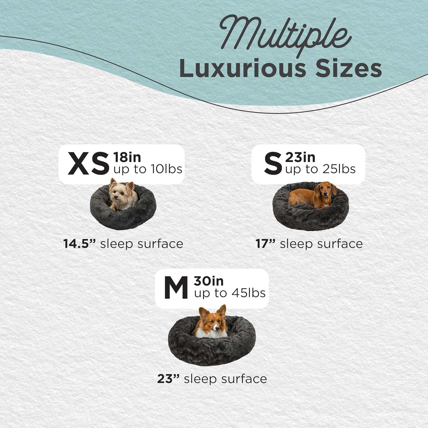 Best Friends by Sheri Original Calming Donut Dog and Cat Bed, Lux Faux Fur, Mink Dark Gray, (23in x 23in) - Anxiety Relief for Pets Up to 25 lbs