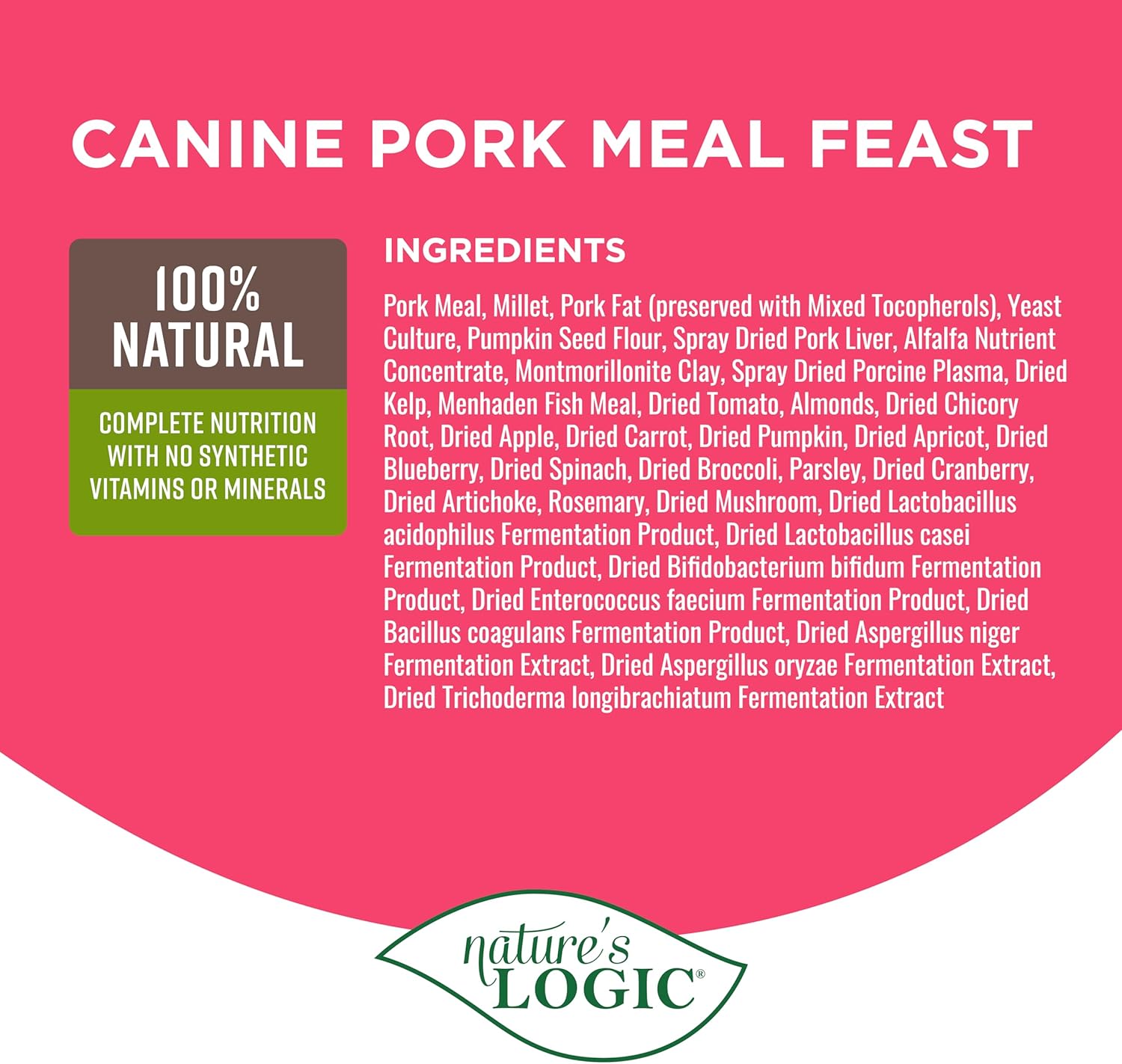 Nature's Logic Canine Pork Meal Feast, 4.4lbs