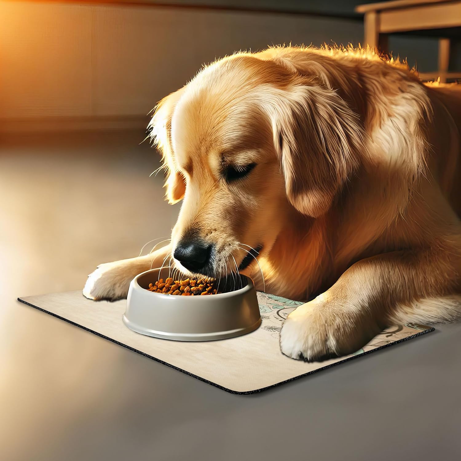 - Features - Fun prints and long-lasting colors. Find any theme and color you want to match your room decor or your pet’s personality. This pet feeding mat can even feature your cat's or dog’s favorite item or design, adding a cheerful touch to your pet’s feeding area.