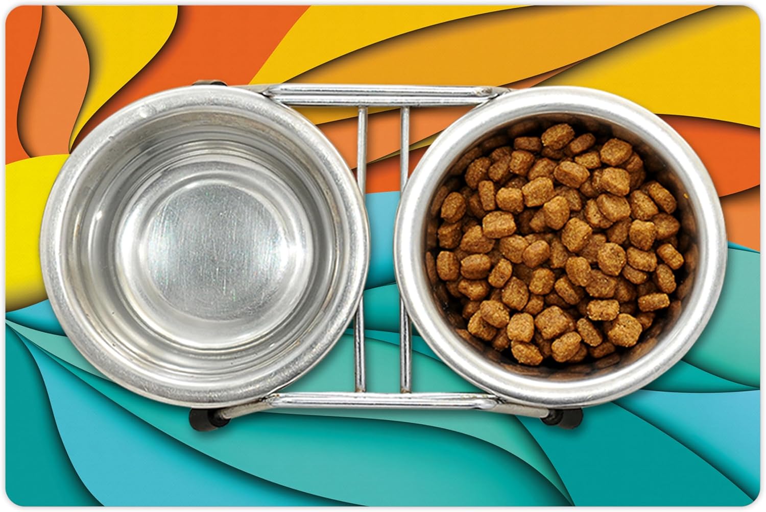 - Features - Fun prints and long-lasting colors. Find any theme and color you want to match your room decor or your pet’s personality. This pet feeding mat can even feature your cat's or dog’s favorite item or design, adding a cheerful touch to your pet’s feeding area.