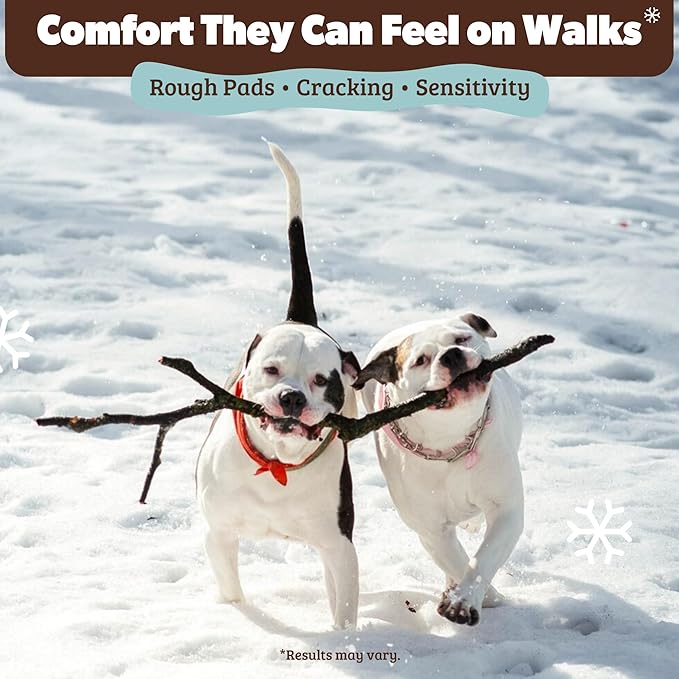 - FOR ALL BREEDS & ACTIVITY LEVELS: Suitable for dogs of all breeds and sizes, from small city dogs to active winter adventurers. Whether navigating snowy streets or cold backyards, this paw protection balm fits seamlessly into a daily winter paw care routine.