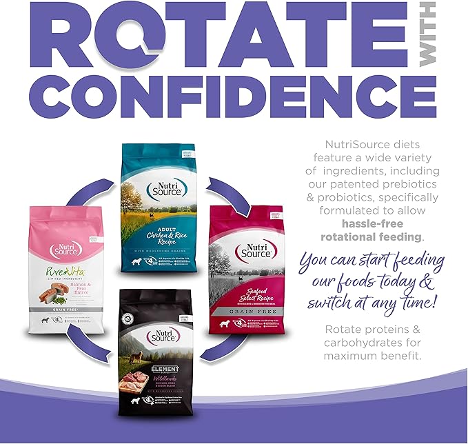 - NutriSource grain inclusive formulas deliver compact nutrition and include prebiotics and probiotics to help support a healthy gut