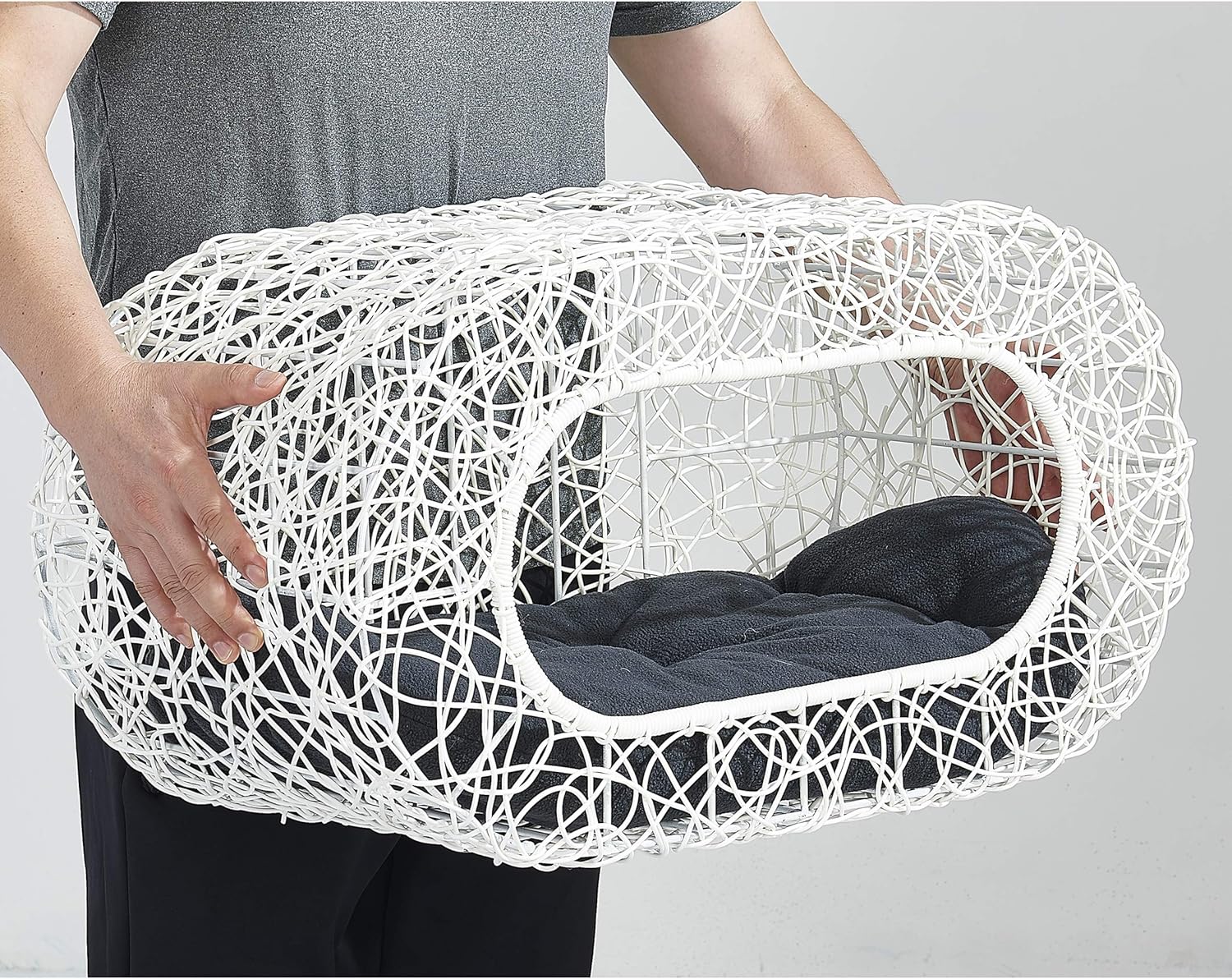- CAT CAVE BED WITH STURDY METAL FRAME: Built with metal backbone frame and loose woven rattan looks like a work of art, cat cave bed can shield pets cats and kitty inside from harms way