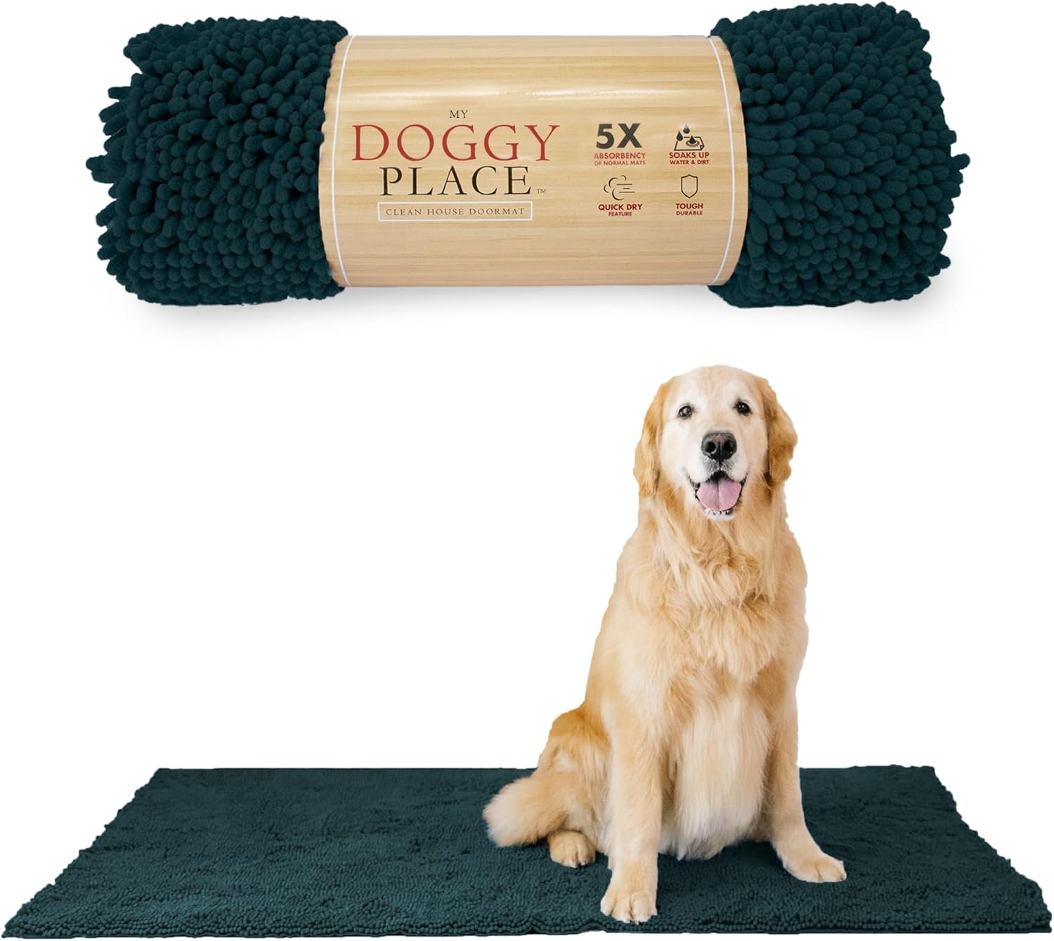 My Doggy Place Microfiber Dog Mat for Muddy Paws, 60" x 36" Teal - Non-Slip, Absorbent and Quick-Drying Dog Paw Cleaning Mat, Washer and Dryer Safe - X-Large/Runner