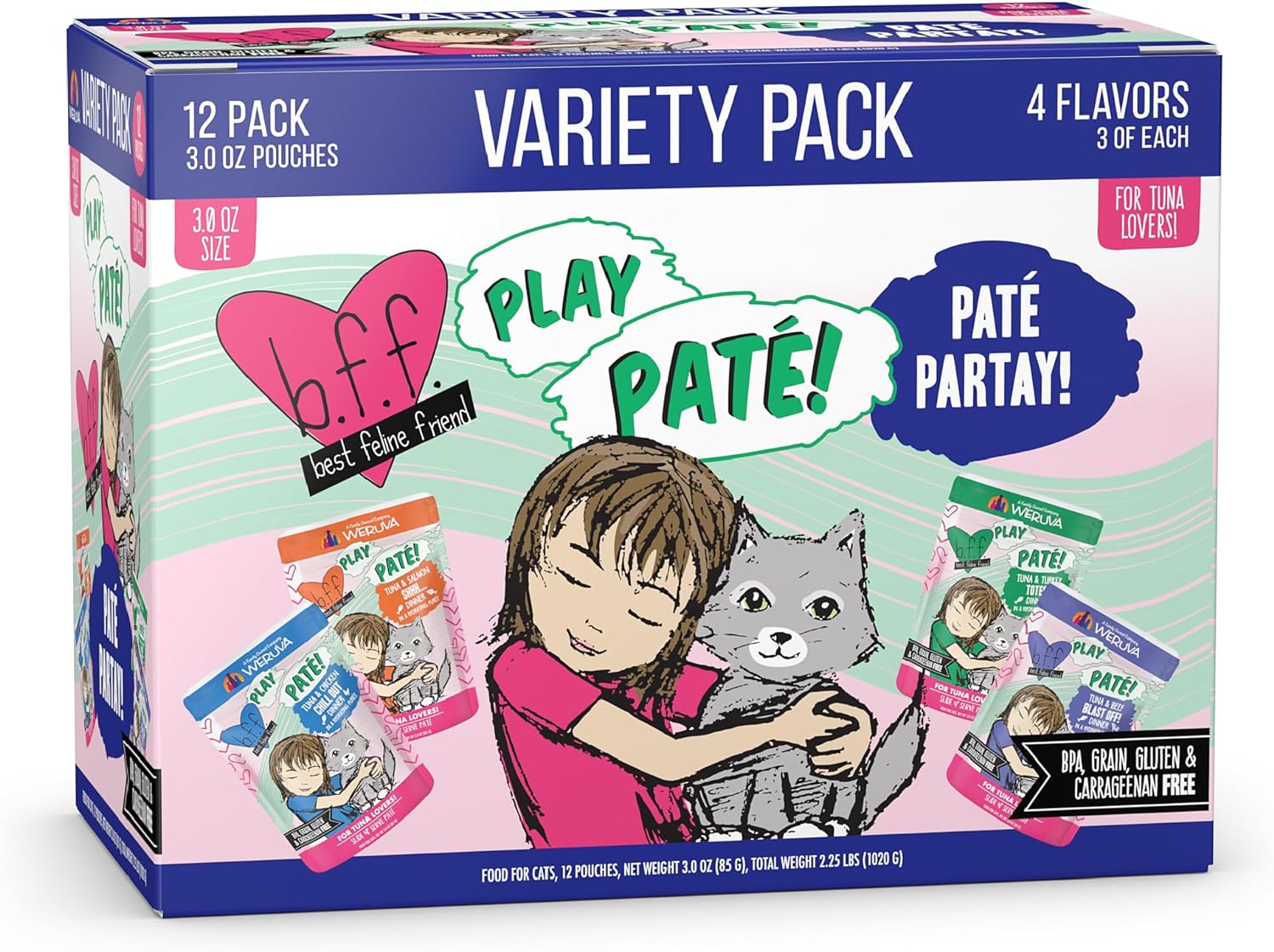 Weruva B.F.F. Play - Best Feline Friend Paté Lovers, Aw Yeah!, Paté Partay! Variety Pack, 3oz Pouch (Pack of 12)