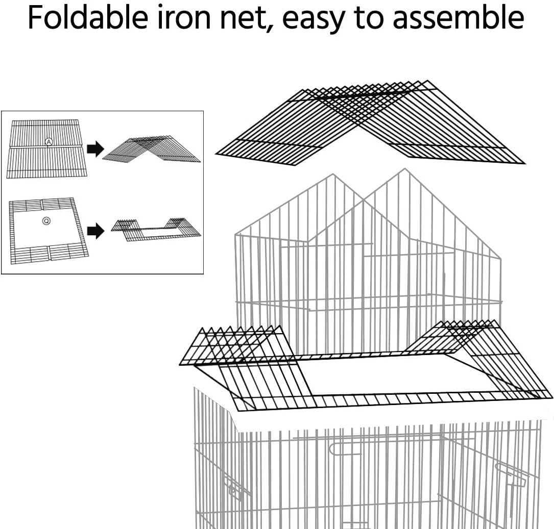 - Slide-out tray: The slide-out litter tray makes cleaning a breeze. The bottom grate above the tray prevents birds from walking directly on the droppings, ensuring your pets’ health and the tidiness of the cage