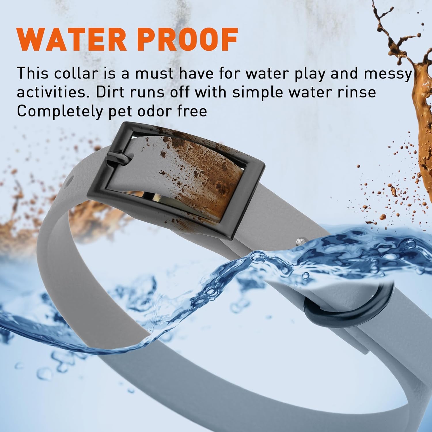 • Free Your Dog to romp in puddles and retrieve from lakes with the Dogline Biothane Waterproof Dog Collar. This water-repellent collar stays dry and odor-free, without shrinking or losing flexibility.