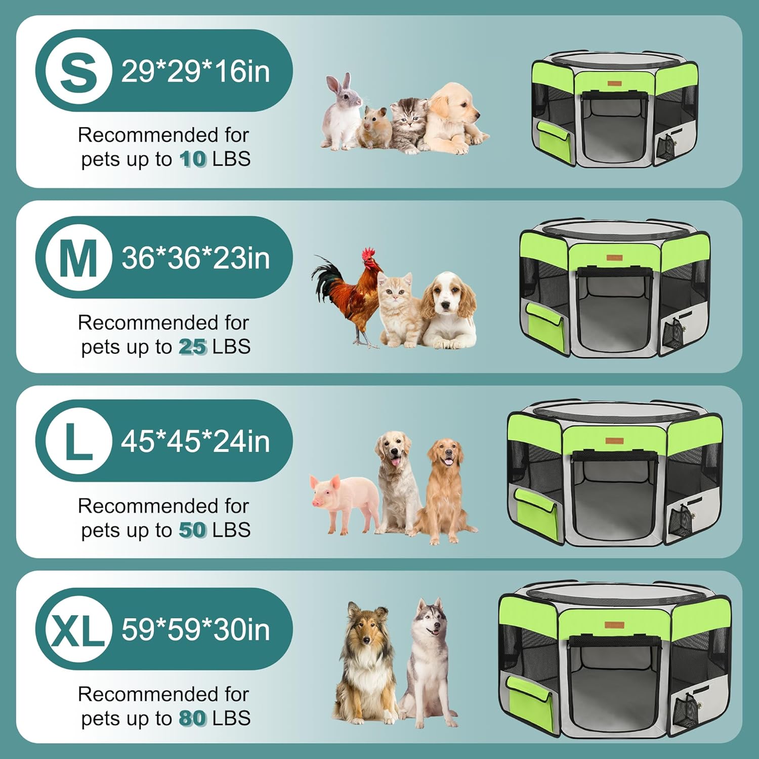 - 【4 SIZES FOR MOST PETS】▶▶▶Small-29x29x16in;Medium-36x36x23in;Large-45x45x24in;X-Large-59x59x30in.Please allow 1-2in error. Suitable for cats, dogs, puppies, kittens, rabbits, chickens, ferrets, hamsters, guinea pigs and pregnant pets, etc.Please measure your pet's size and choose the right size before you buy