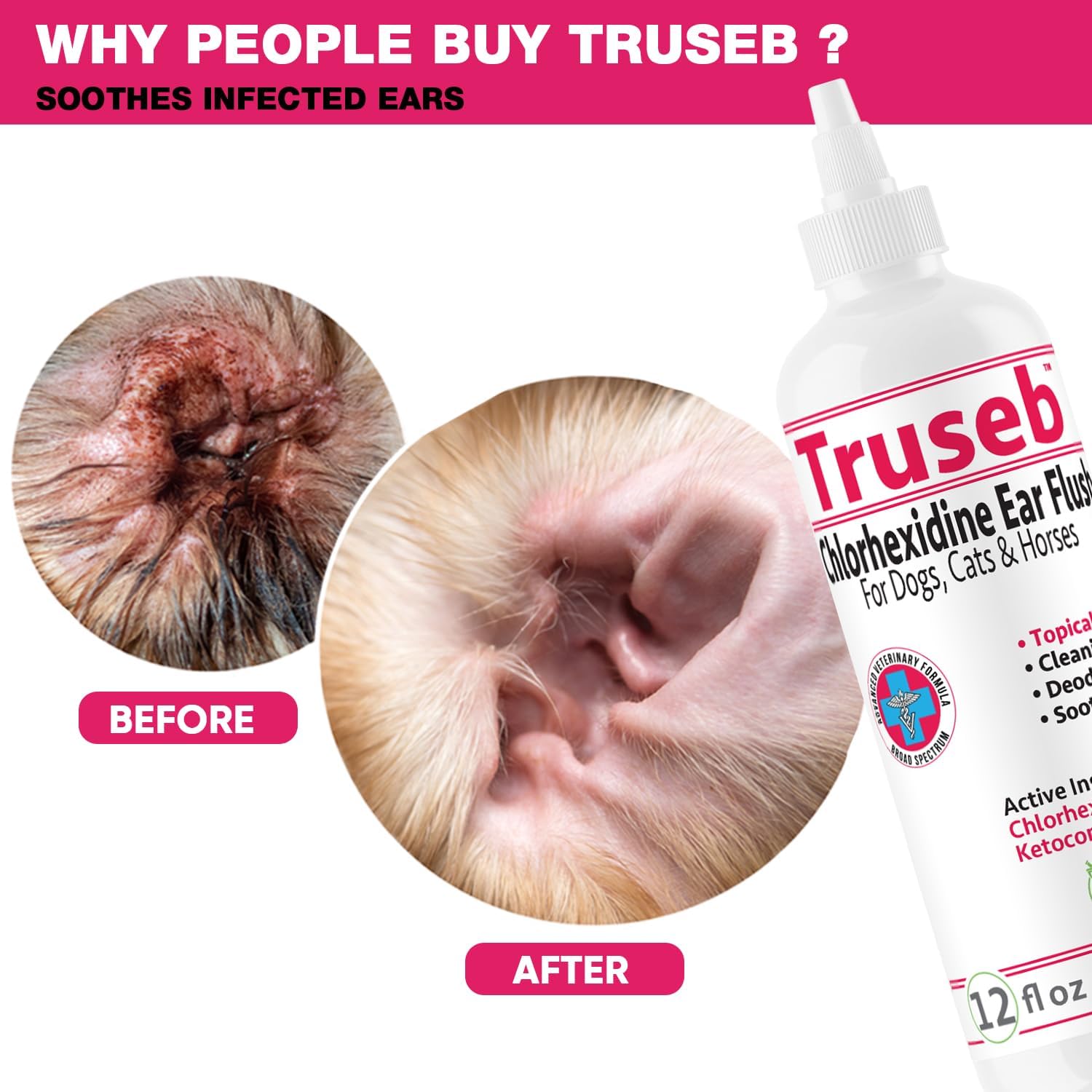 All Natural Ear Flush for Dogs & Cats, Ketoconazole & Chlorhexidine Ear and Vet-Strength Ear wash with a Light Scent (USA) (Ketoconazole & Chlorhexidine Ear Flush, 12 oz)