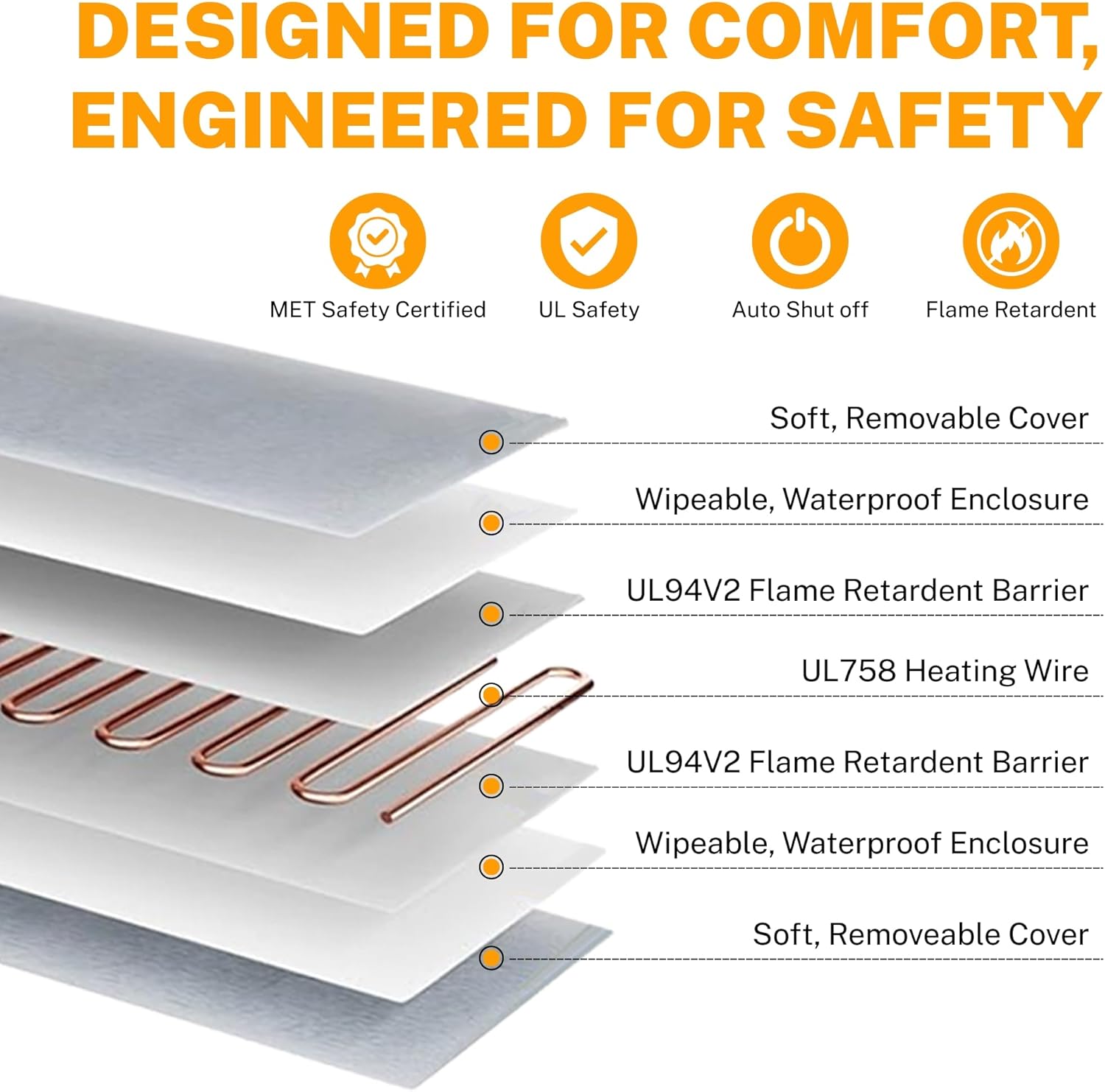 - Safe & Secure: Boasts a 7-layer protection with UL-certified heating wire, waterproof and flame-retardant envelope, and a built-in temperature sensor for ultimate safety.