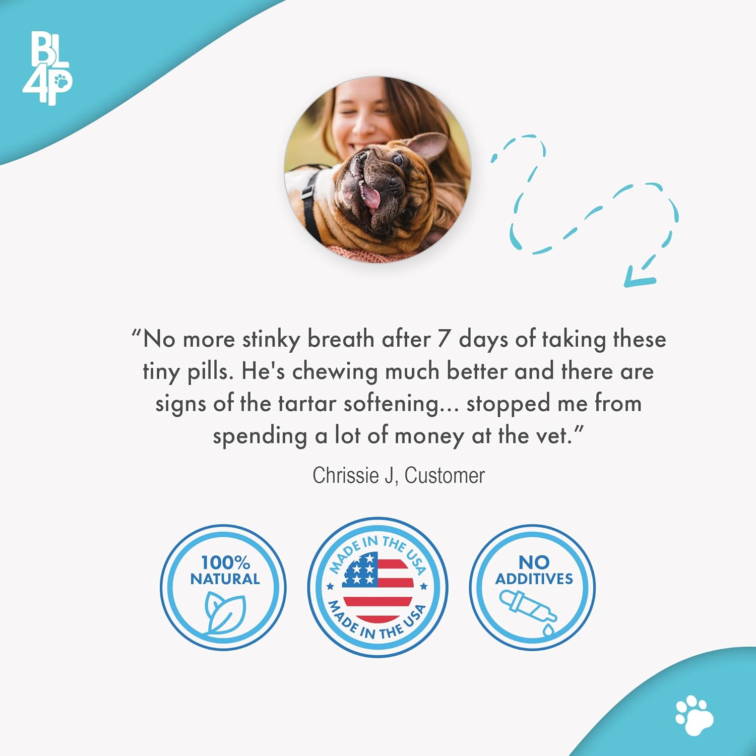 Dog Bad Breath Treatment & Dog Dental Care Solution, Natural Supplement for Canine Oral Health, Canine Tooth Pain Relief, Plaque Control, Gum Disease, Gingivitis, 400 Odorless, Tasteless Pills