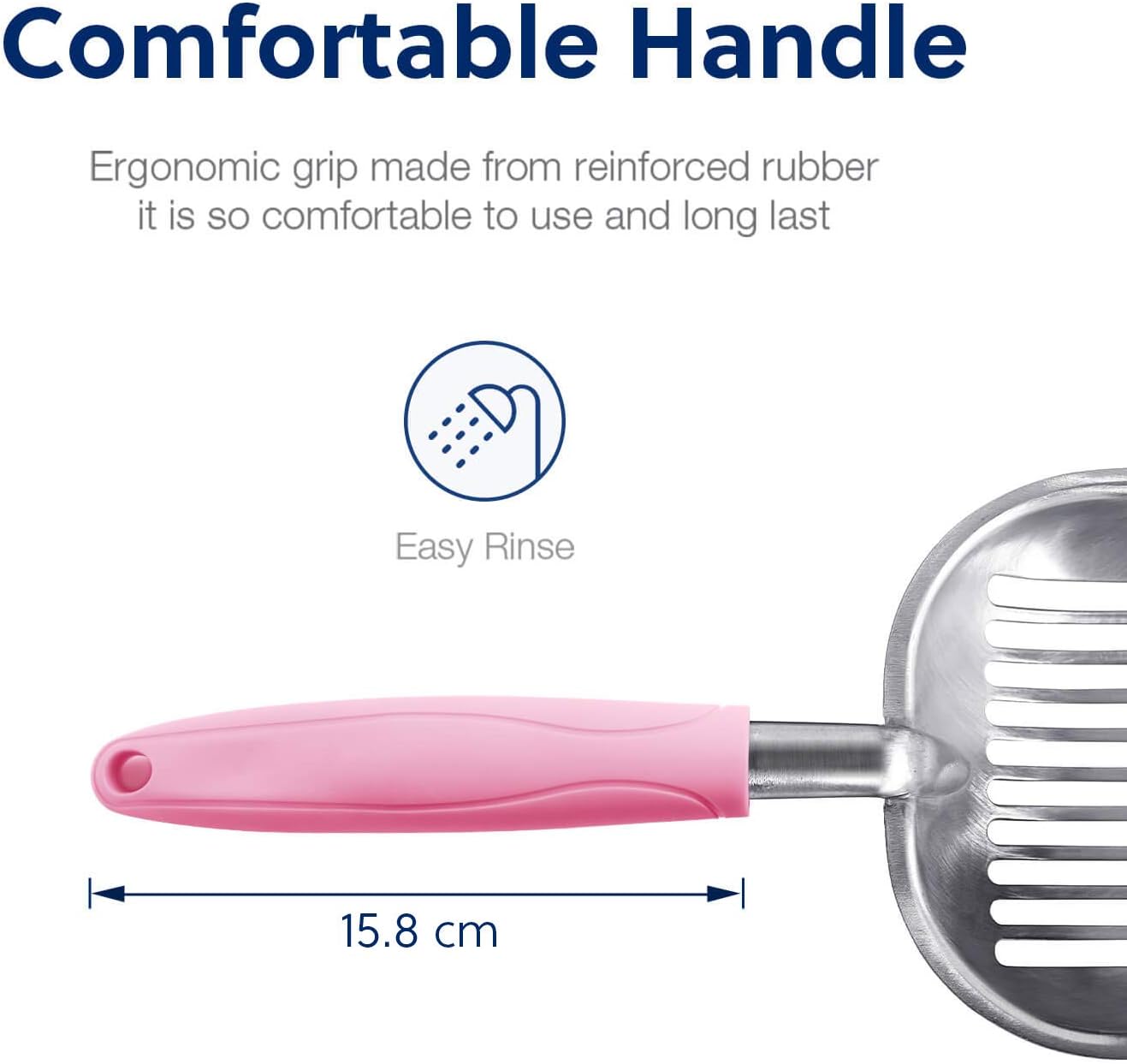 - [Features]: WePet made this scooper durable with heavy duty quality. After investigation with thousands thoughtful users, we finally make an improvement of removing the serrated edge as mentioned on reviews. The body is waterproof and very easy to clean, rust-resistant and corrosion resistant. It’s highly recommended by cat lovers for everyday use.