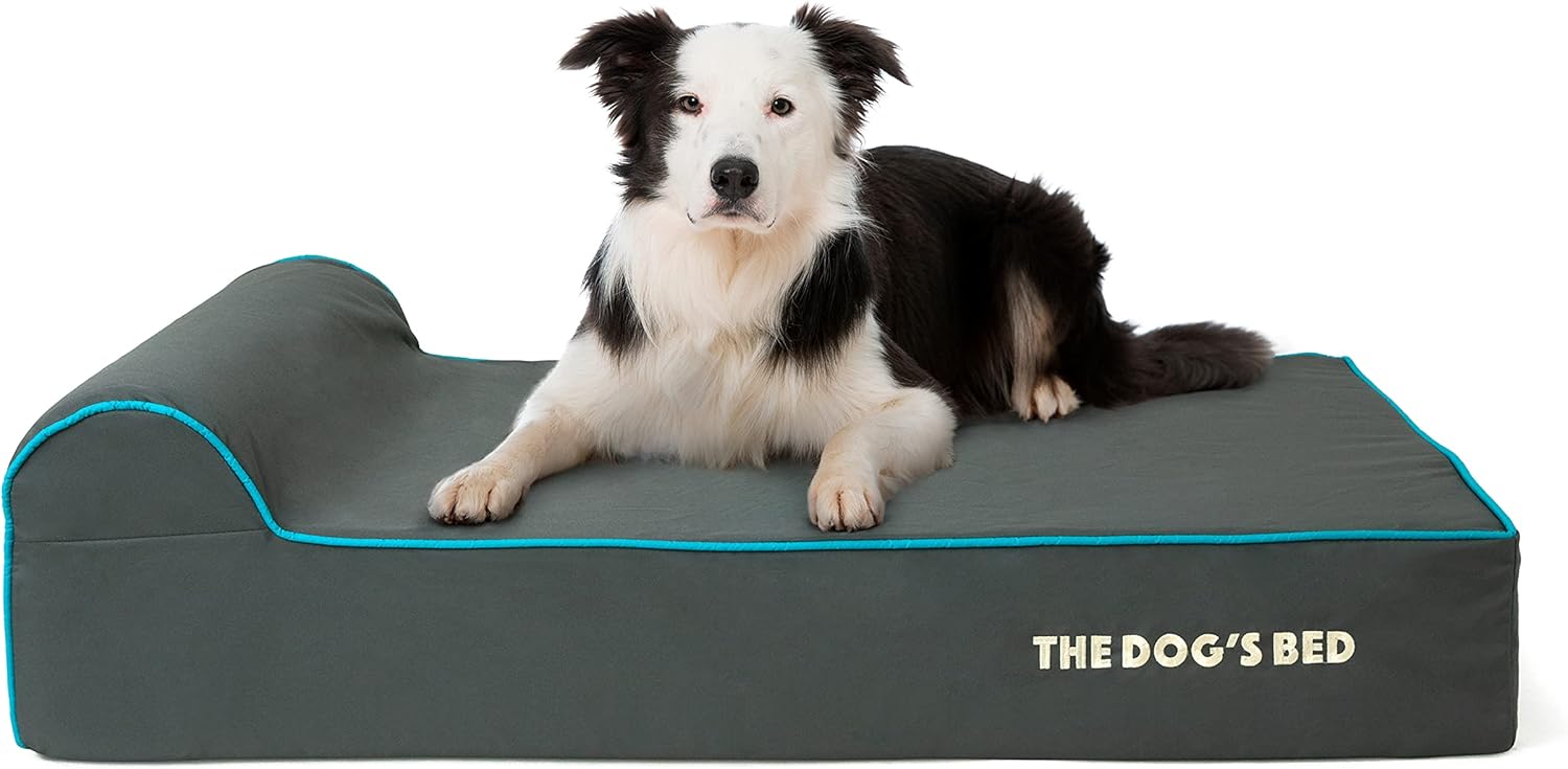 The Dog’s Bed Orthopedic Headrest Dog Bed Large Grey/Blue 40x25, Memory Foam, Pain Relief for Arthritis, Hip & Elbow Dysplasia, Post Surgery, Lameness, Veterinary Approved, Waterproof Washable Cover
