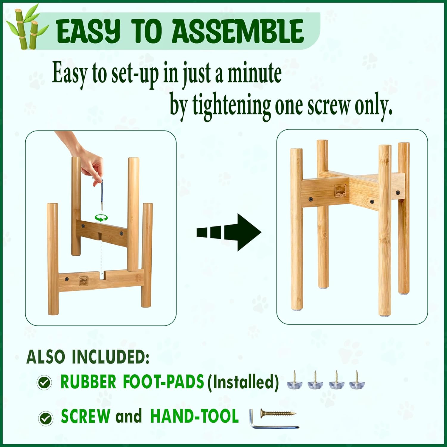 - Raises Bowl to Around 14" High โ When a bowl is placed on the bamboo stand, the height of the elevated bowl will become approximately 14 inches tall from ground to bowl rim. Please see photos for measurement and set up. [Bowls shown in the photos are sold separately.]