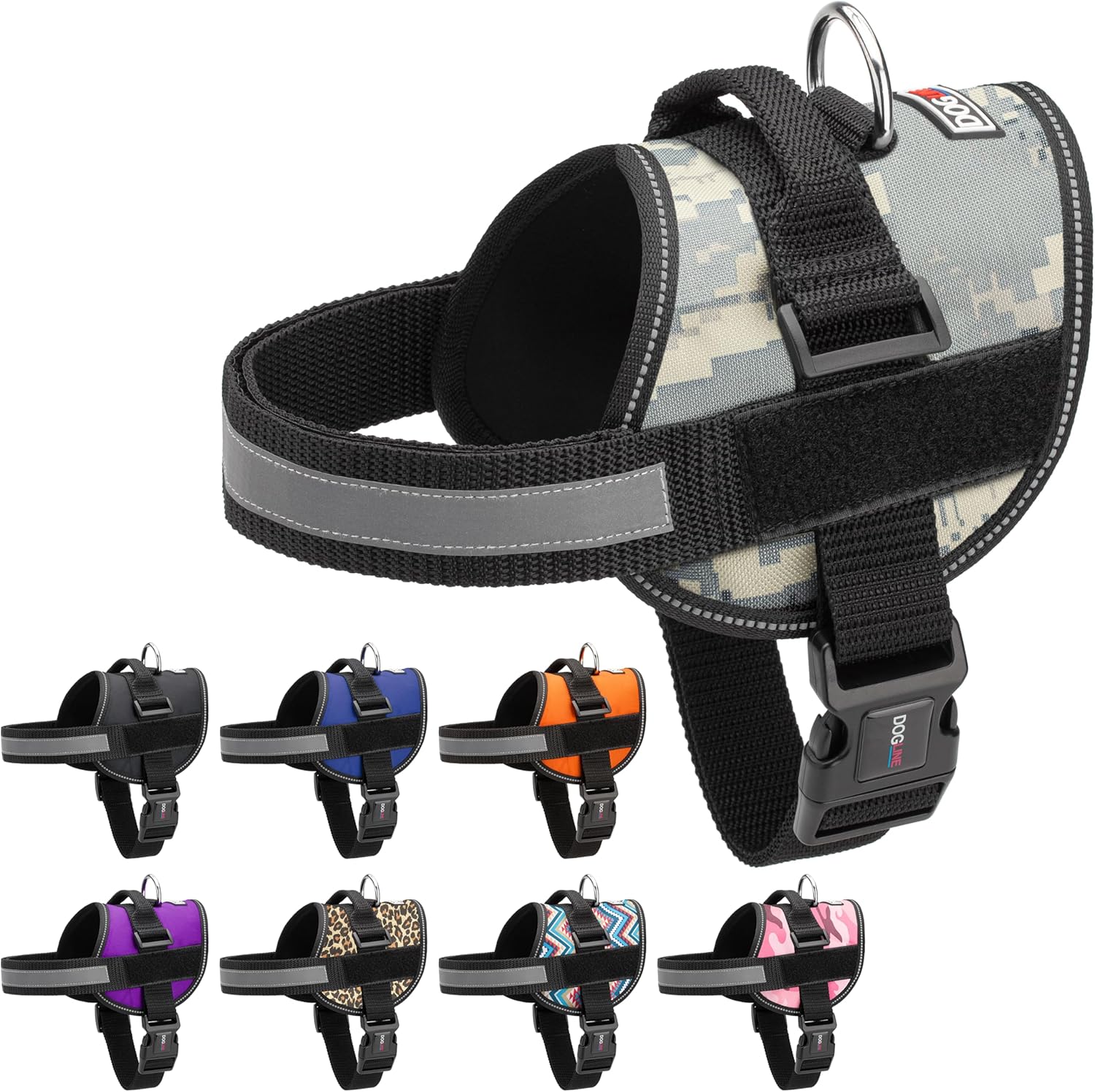 Dogline Dog Harness, Reflective No-Pull Adjustable Vest with Handle for Walking, Training, Breathable, No - Choke Harness for Small, Medium or Large Dogs Room for Patches Girth 22"-28" in Urban Camo