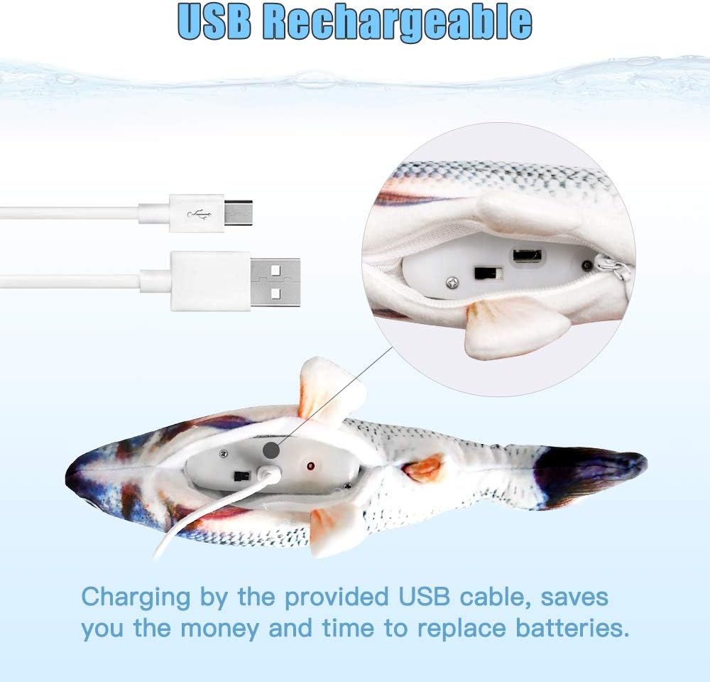 - 【USB Chargeable】This wiggle fish toy is USB chargeable which saves you from the hassle and costs to replace batteries. The infused motor is detachable for convenient cleaning of the plush toy.