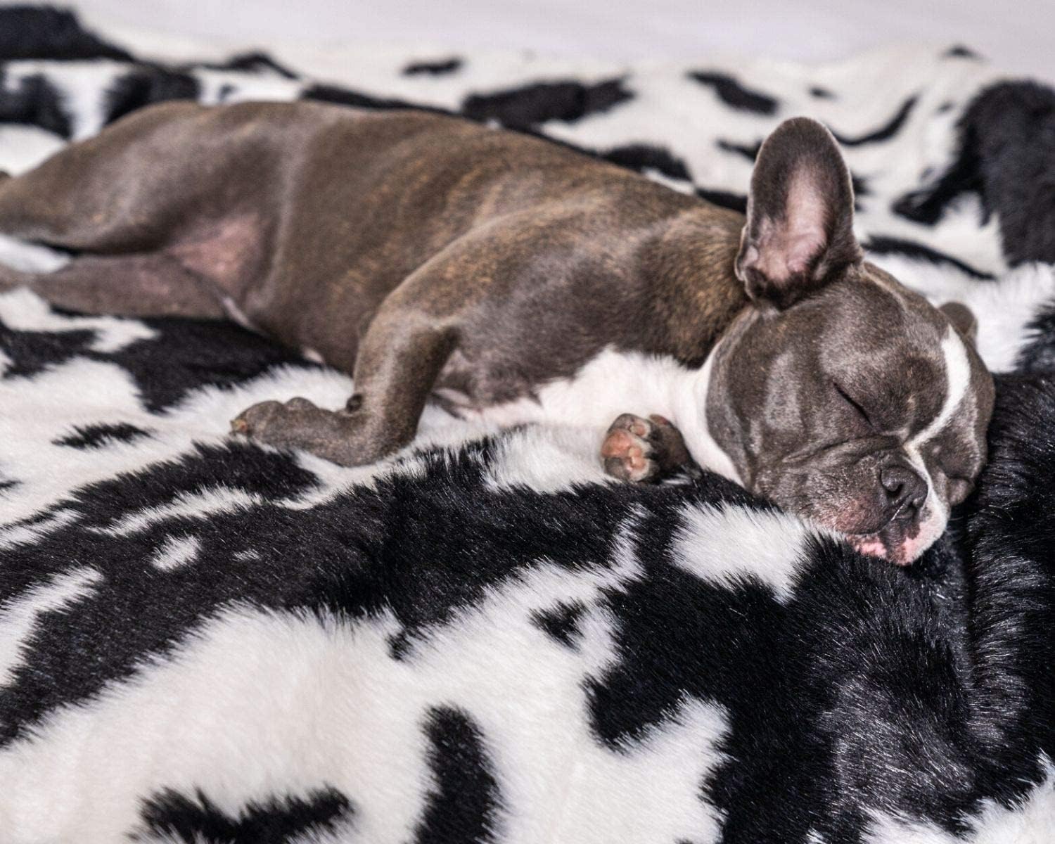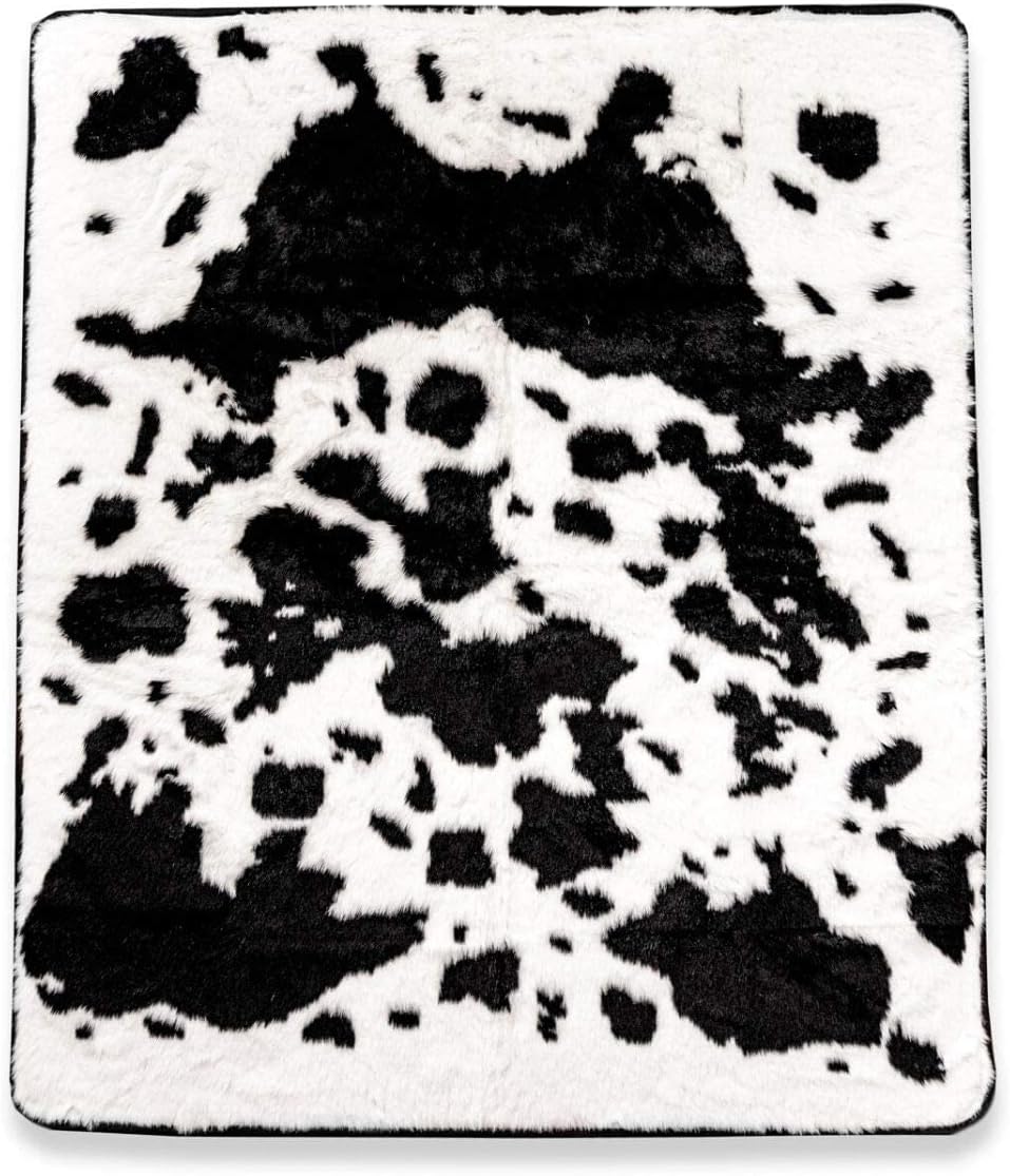 PupProtector Waterproof Throw Blanket for Dogs and Cats, Pet Blanket Cover for Couches, Sofas, Beds, Car Seats, Furniture, Calming Soft Faux Fur, Black and White Cowhide, Original (60" L x 50" W)