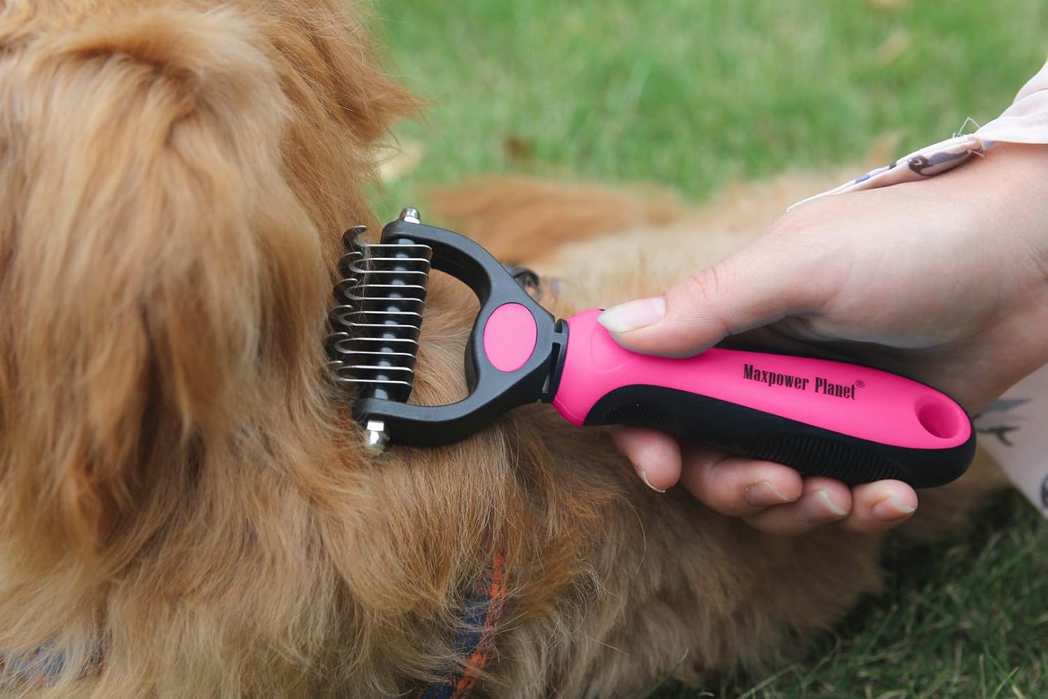 Maxpower Planet Pet Grooming Brush - Double Sided Undercoat Rake for Dogs & Cats, Extra Wide Brush to Reduce Shedding by 95% (Pink, S)