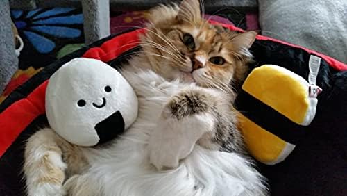 - 2 irresistible crinkle sushi toys included (Tamago Sushi: 4" x 3", Onigiri: 3.5" x 3.5")