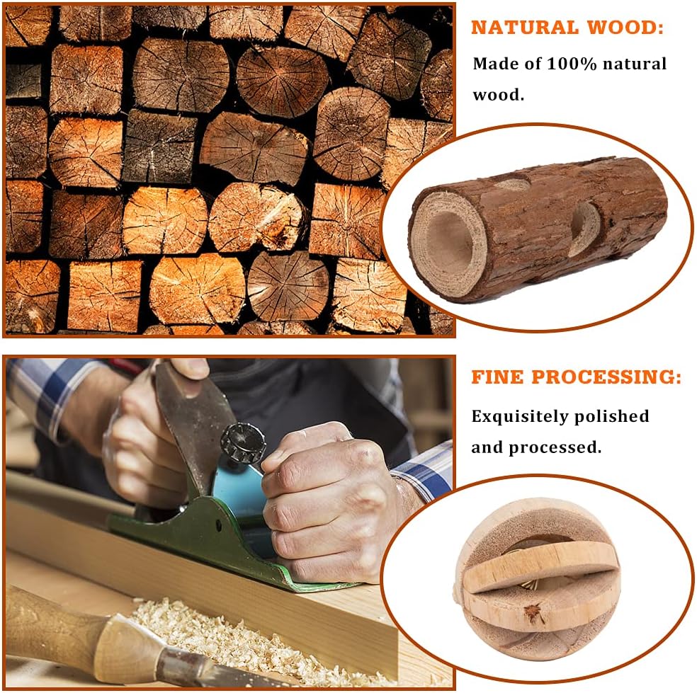 - 【Natural&Safe】Our hamster toys are made of 100% natural wood, safe and durable for chewing and biting. Let your pets to have a lot of fun in their own place. Natural and handmade rodent toys for your pets.