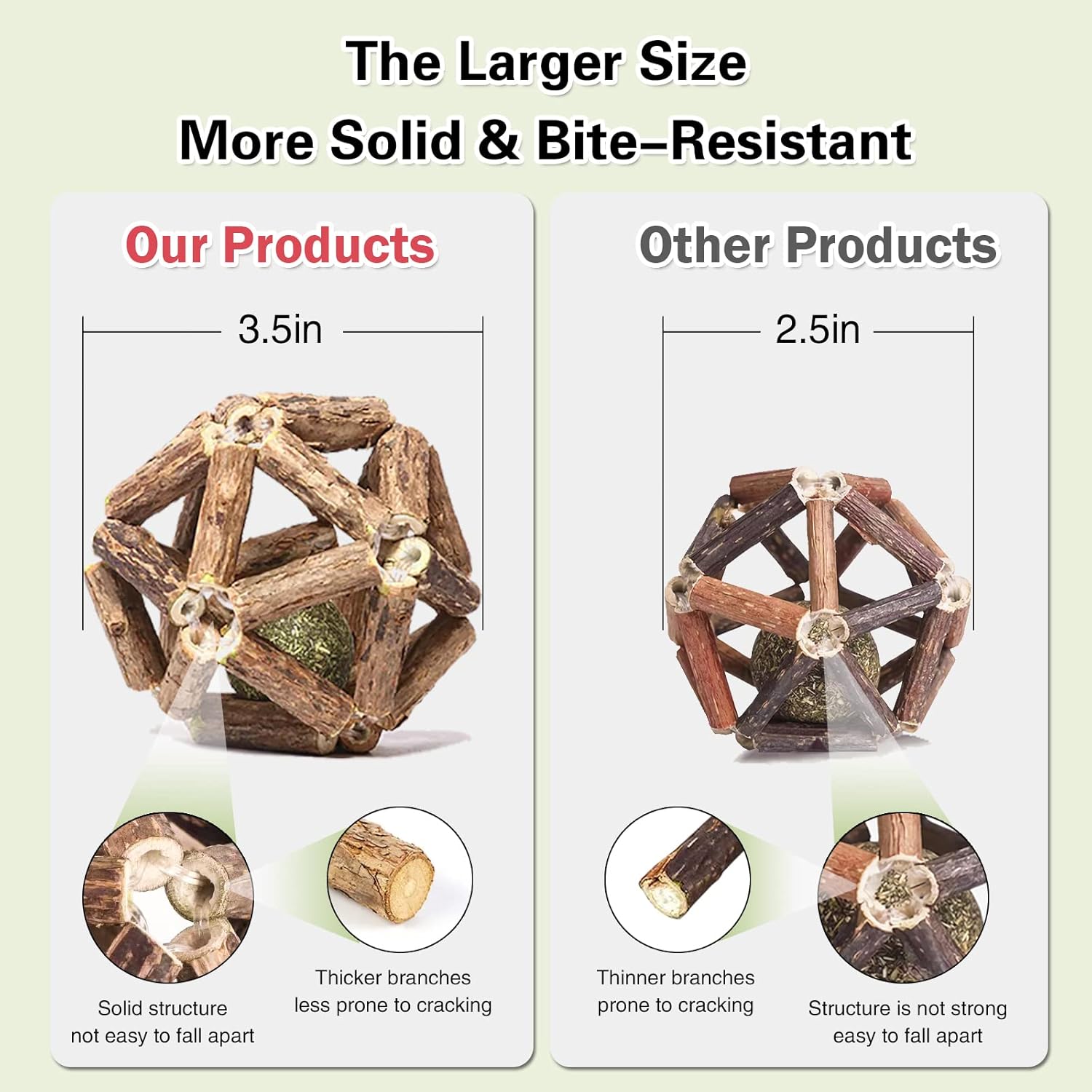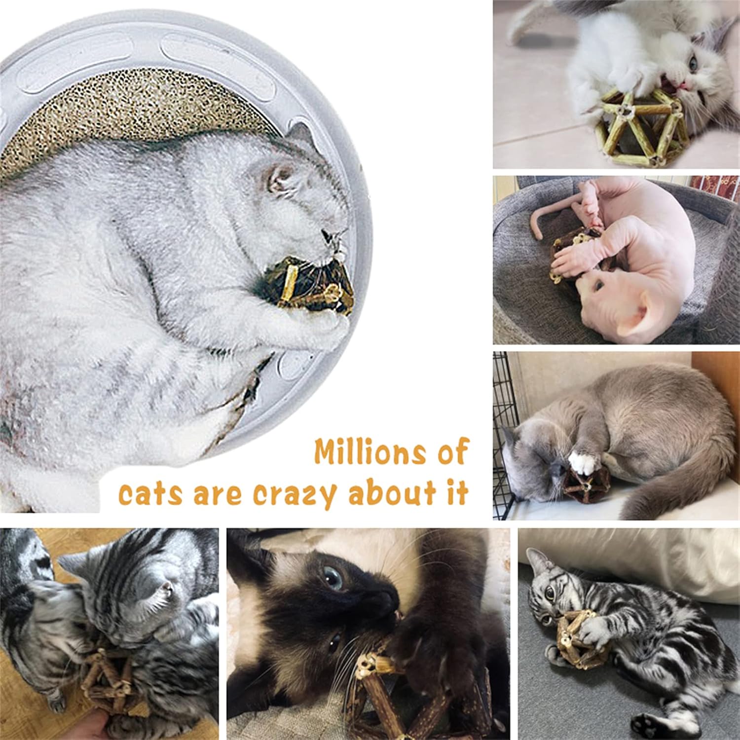 - 【100%Natural】 Silvervine (also known as Mtatabi) plant, harvested from the jungles of Southeast Asia, combined with wild catnip and hand-woven. 100% natural, no additives and preservatives, safe for pets.