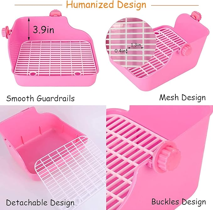 PINVNBY Rabbit Litter Box for Cage Bunny Corner Bedding Box Small Animal Litter Pan Hanging Pet Bowls Cage Potty Trainer Pet Toilet for Rabbit Bunny Guinea Pigs (Pink)