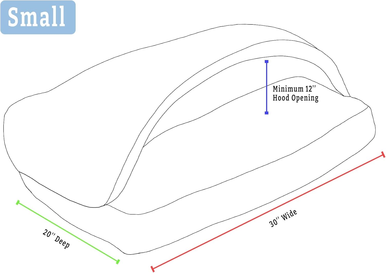 - SIZING: This Small Rectangle Cozy Cave measures 20” x 30” and has an approximate hood opening height of at least 12”. A thin removable plastic tube keeps the hood open for easy entry or exit and can be removed through the small hole at the corner of the hood for a looser, blanket-like structure. This size Small provides space for small breeds while creating a snug, enveloping feel.