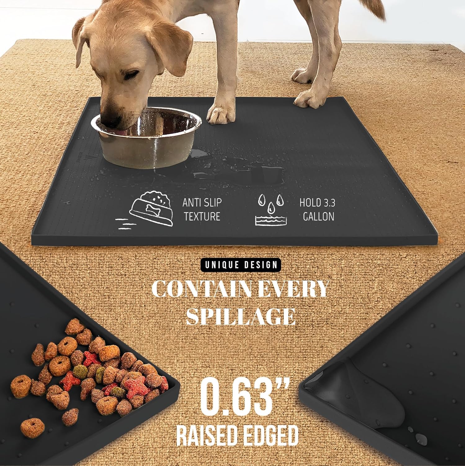 AVERYDAY 32x24'' Silicone Dog Mat for Food and Water, 0.63'' Edge Dog Food Bowl Mats for Floor Waterproof, Dogs Water Mat for Sloppy Drinker, Non Slip Rubber Pet Feeding Mats for Indoor Dogs and Cats