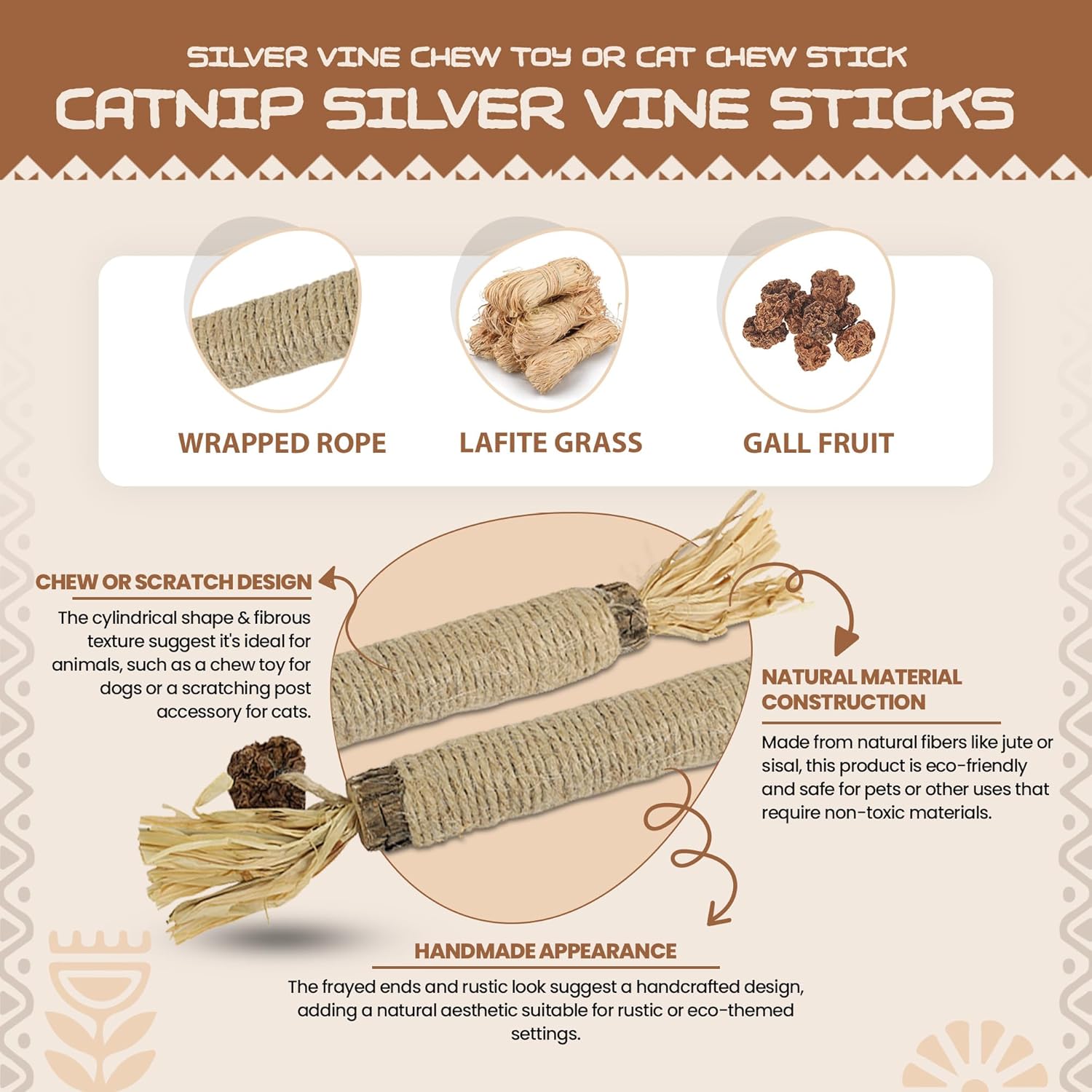 HUPA Catnip Silvervine Sticks | Anxiety Relief & Kitten Teeth Cleaning, Natural Silvervine with Raffia Grass for Healthy Teeth & Digestion | for Indoor Cats, All Ages & Breeds | 2 Sticks