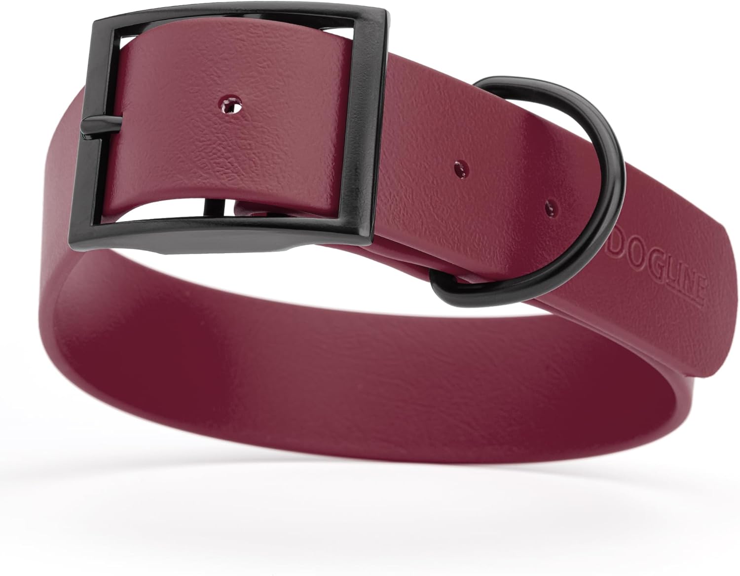 Dogline Biothane Waterproof Dog Collar Strong Coated Nylon Webbing with Black Hardware Odor- Proof for Easy Care Easy to Clean High Performance Fits Small Medium or Large Dogs, Merlot Burgundy