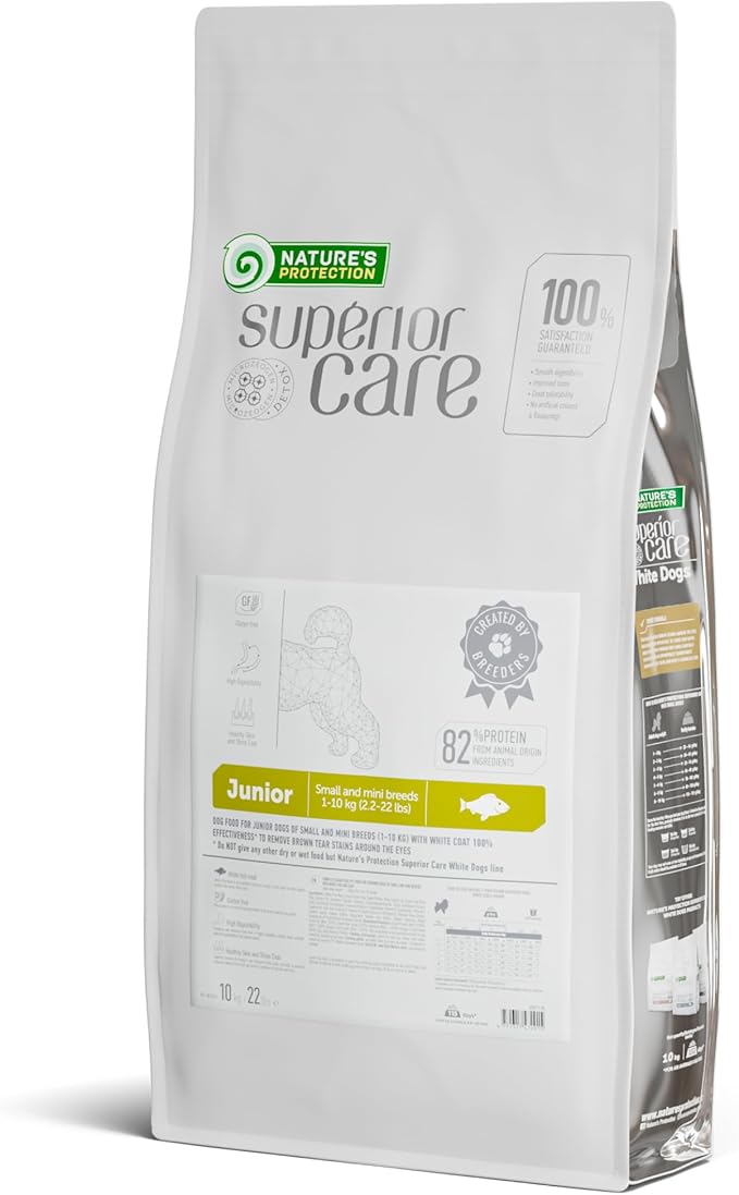 Nature's Protection Puppy Food Small Breed - High Protein, Grain Free, Tear Stain Formula Dry Dog Kibble for White & Light Fur Dogs (Superior Care - White Fish, 22 lb)