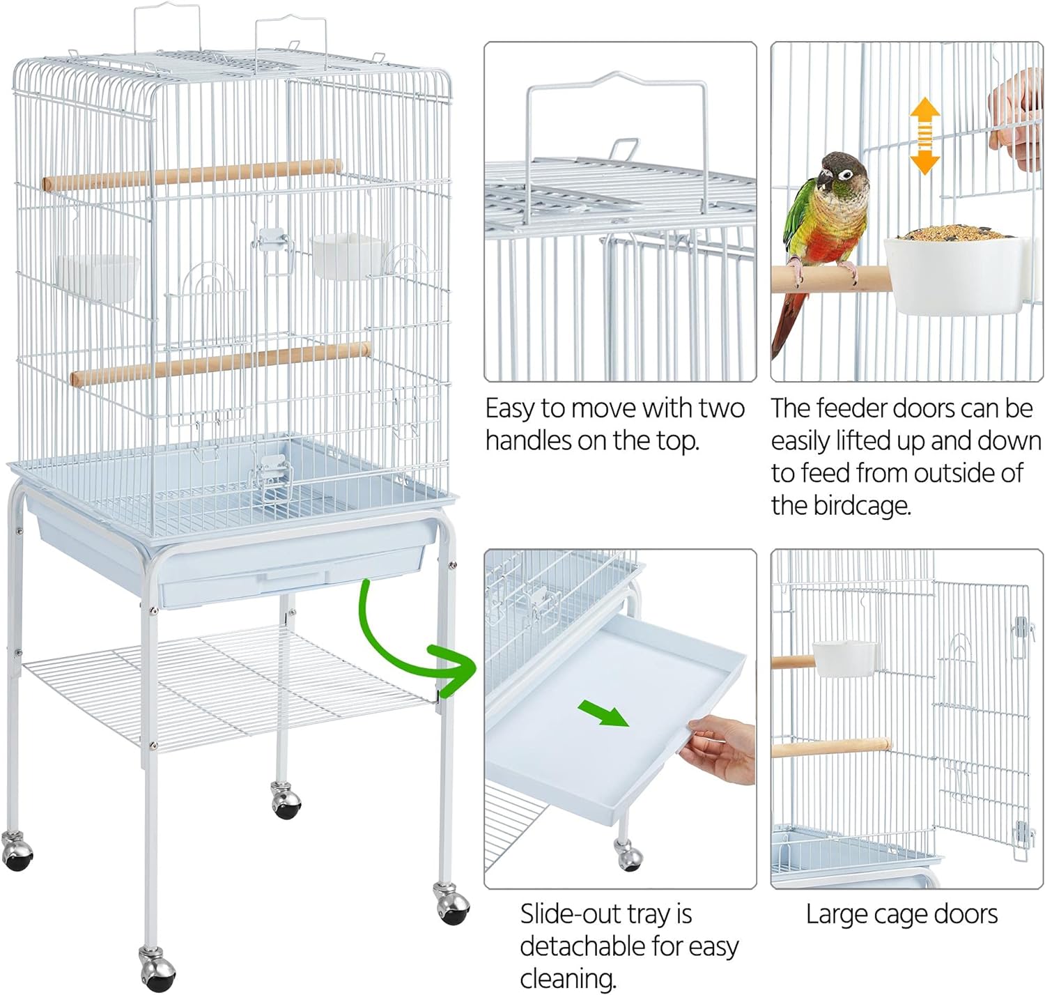Yaheetech Play Open Top Parrot Bird Cages for Sun Parakeet Cockatiel Green Cheek Conure Lovebird w/Detachable Rolling Stand, White