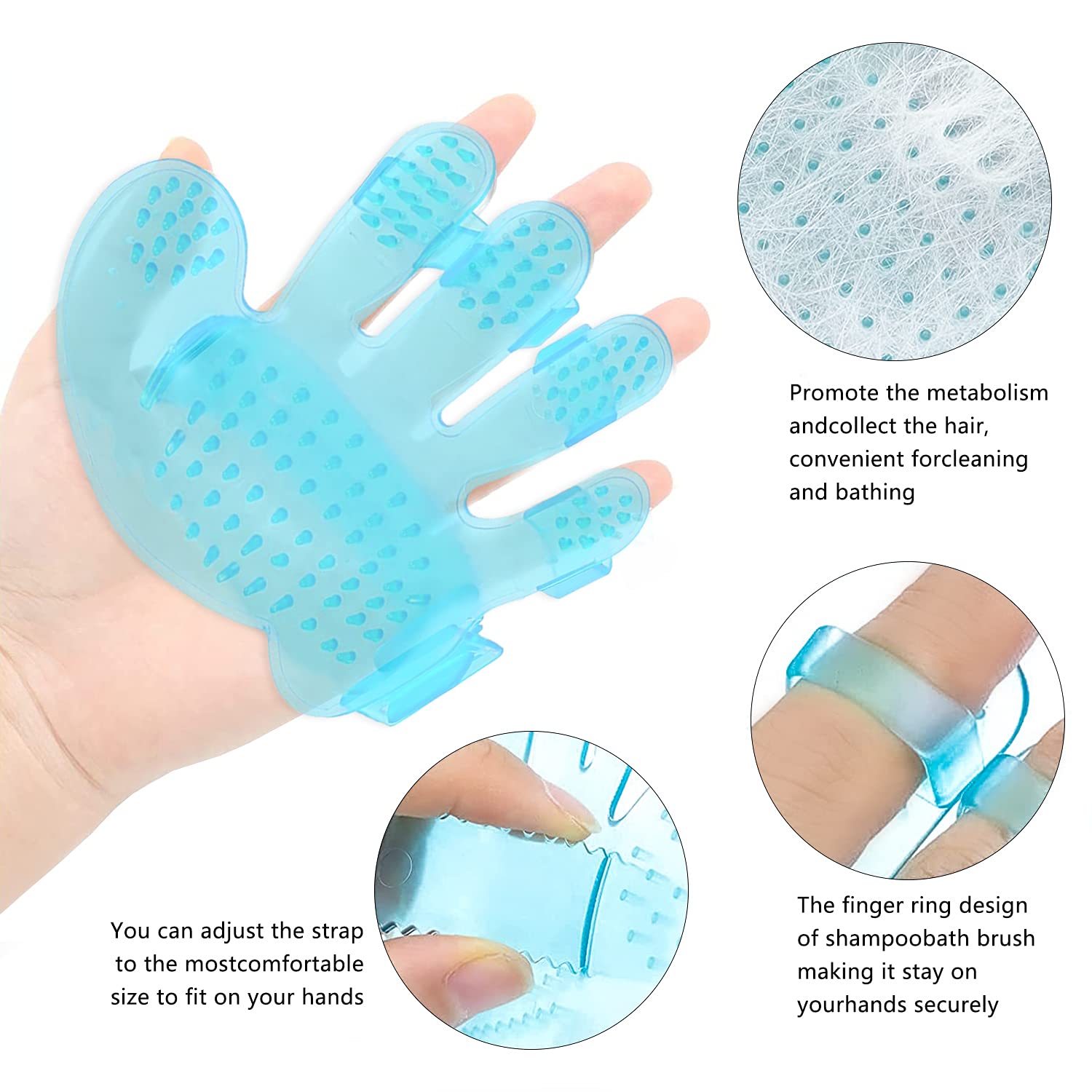 - 🐰Small Animal Cleaning Tools - This pet bath brush massage comb is specially made for pet showers, he grooming brush is equipped with an adjustable handle, which can be fit for different size hand, with massage particles. It can comb the hair and massage the skin when taking a bath, which not only makes it cleaner, but also promote the metabolism benefits the health of the fur for you pet