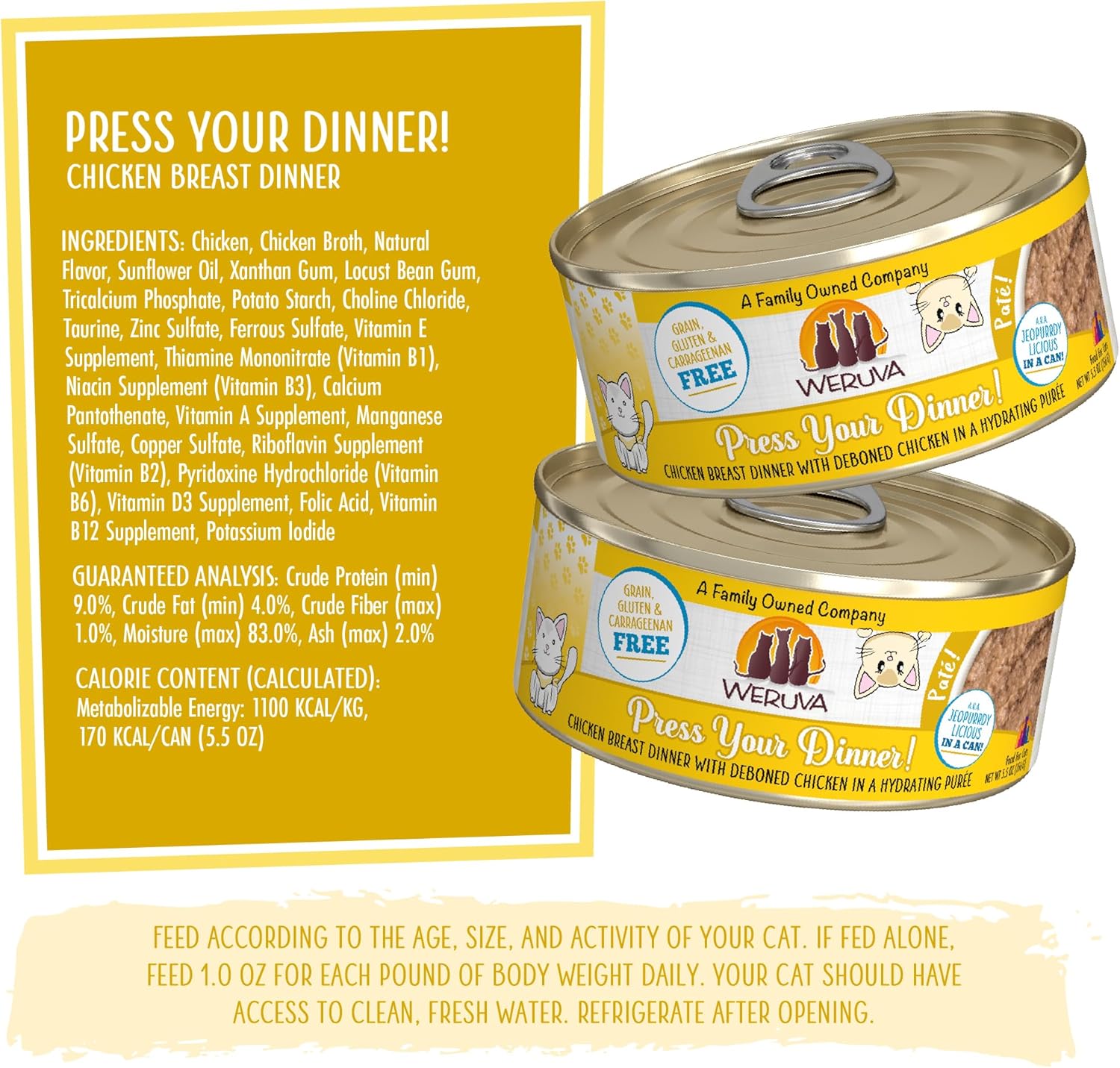 Weruva Classic Cat Paté, Press Your Dinner with Chicken, 5.5oz Can (Pack of 8)